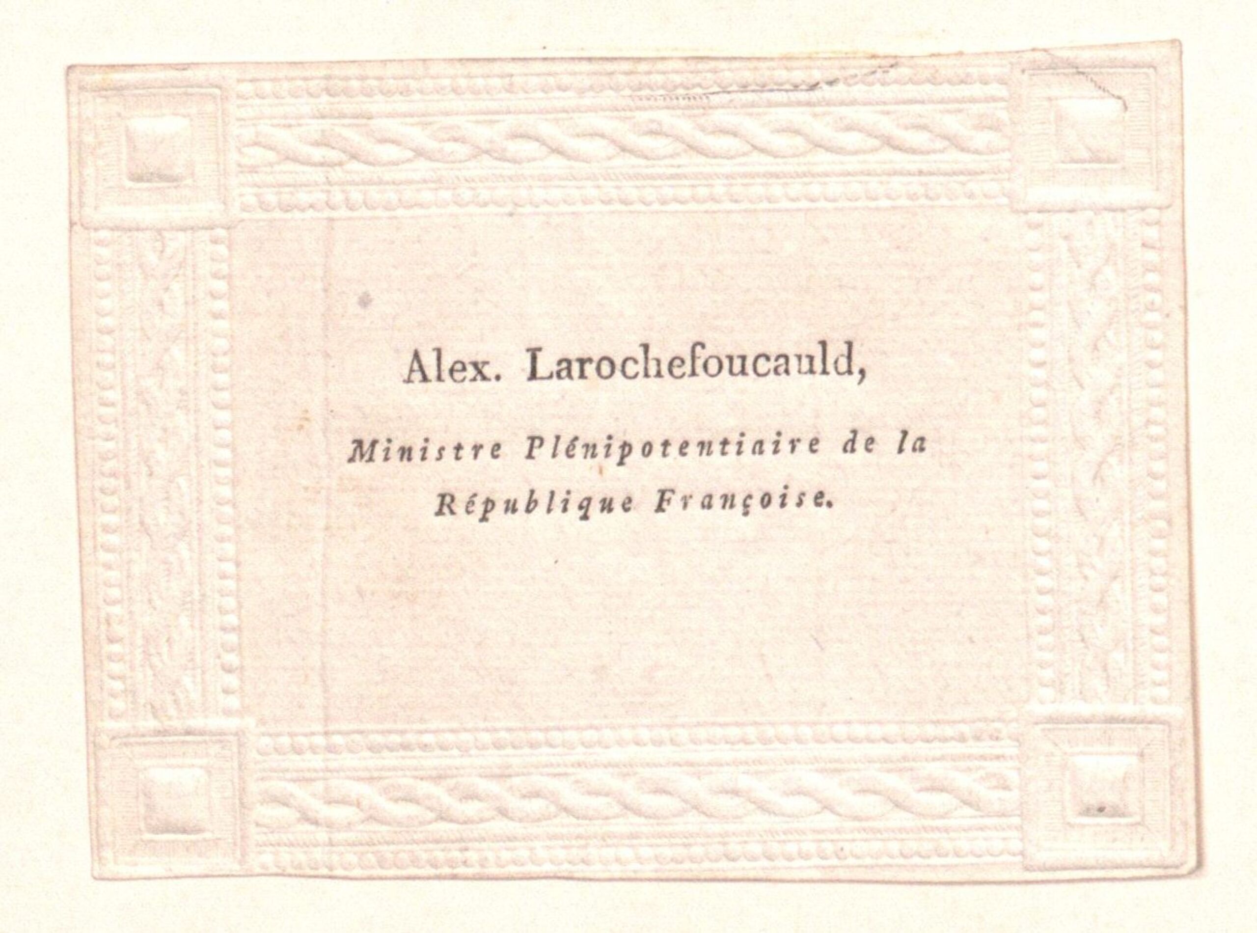 - Geprägte Visitenkarte des Biedermeiers von Alex. Larochefoucauld eine ornamentale Umrahmung (given title)