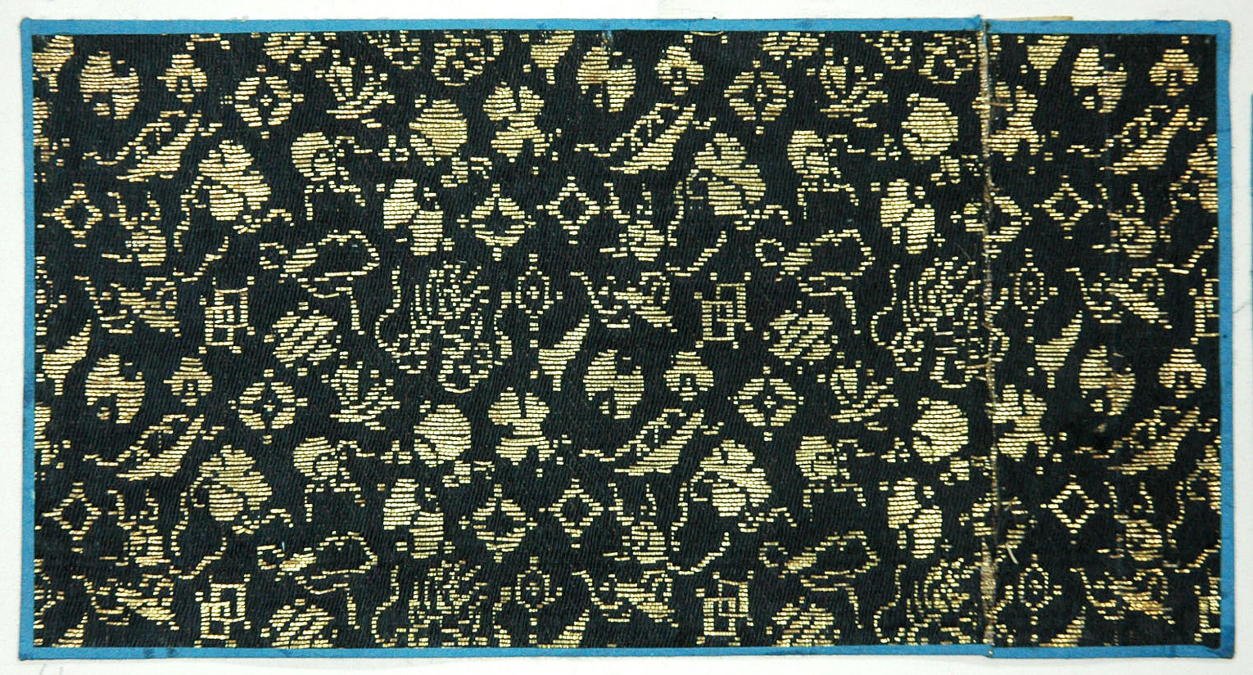 • woven textile fragment, Goldene Glückssymbole auf schwarzem Grund, Anonym, MAK Inv.nr. T 6625-18