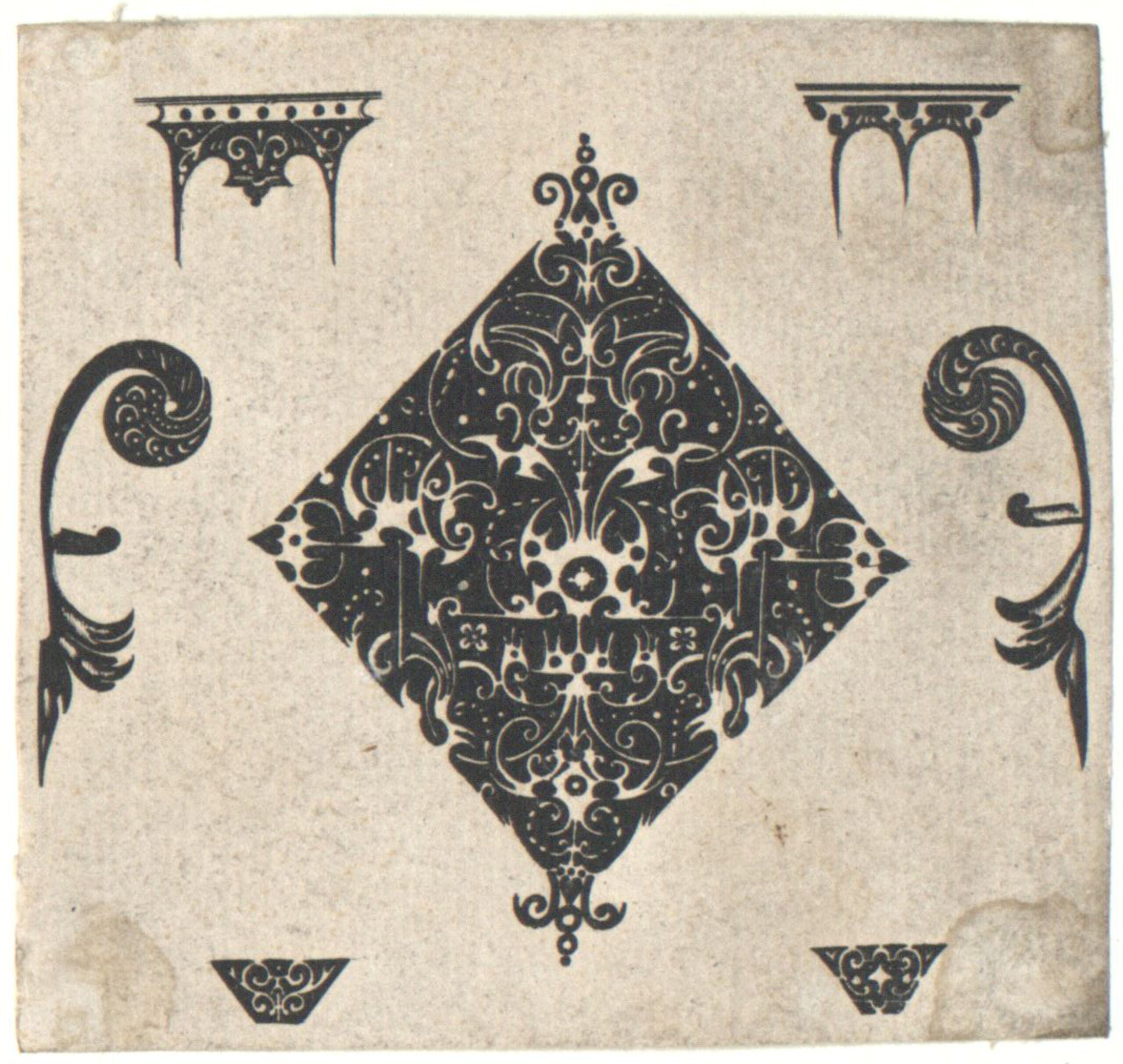 - Goldschmiedeornament, Kopien nach Guillaume de La Quewellerie, ausgeschnitten aus: Reynard, Ornements des Anciens Maitres, Schwarzornament (given title)