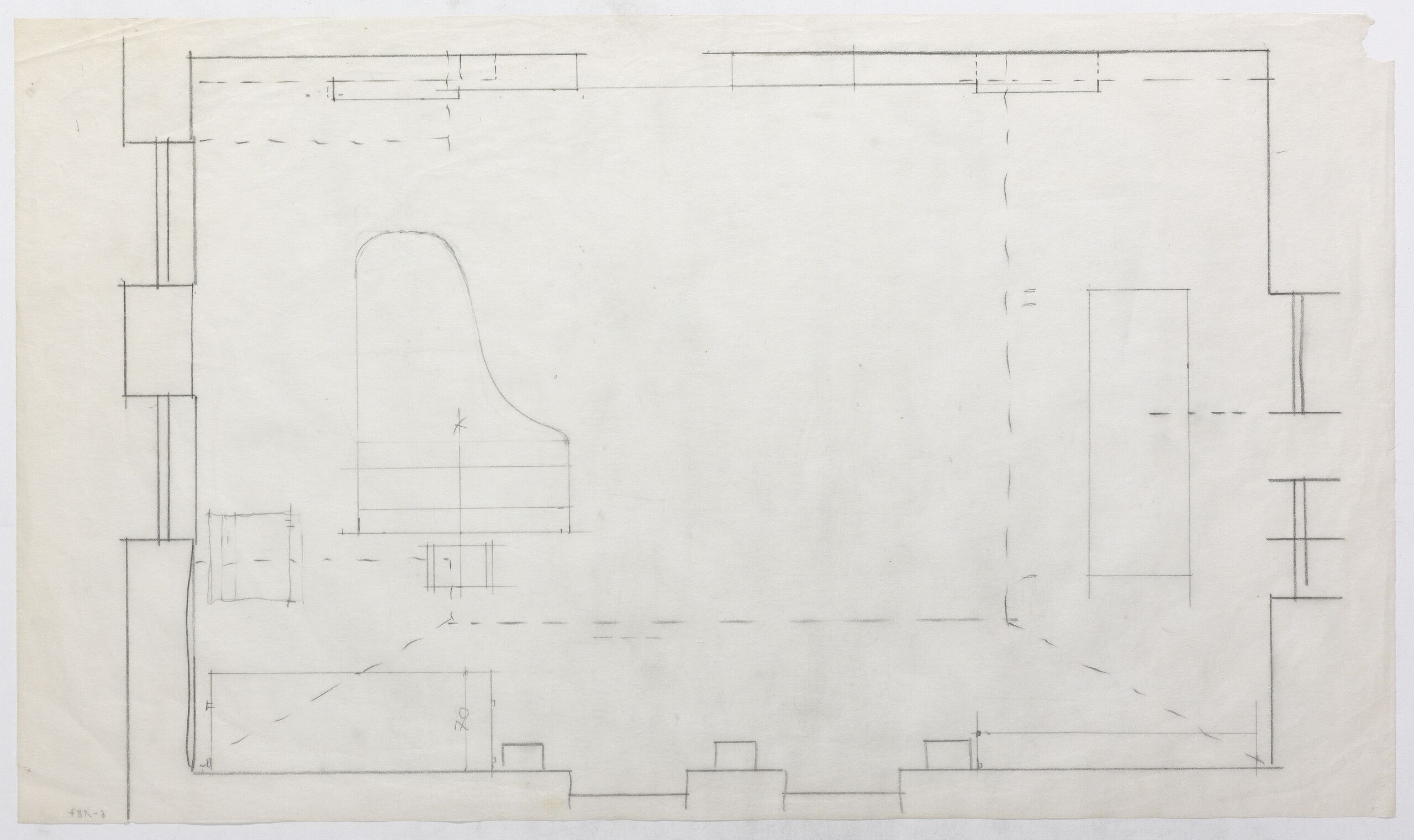 sketch, Grundriss des Arbeitsraumes von György Ligeti, Anna-Lülja Praun, MAK Inv.nr. KI 16475-6-187