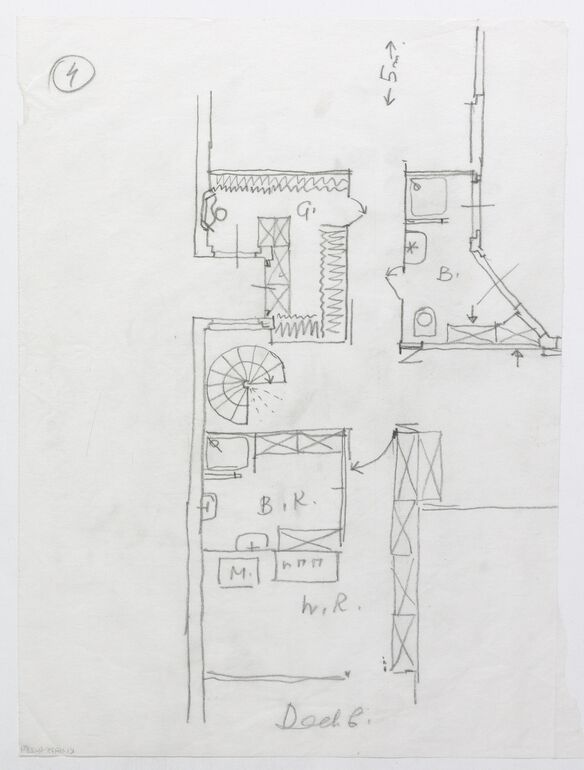 sketch, Grundriss von dem Ober- oder Untergeschoß, Anna-Lülja Praun, MAK Inv.nr. KI 16475-4-320