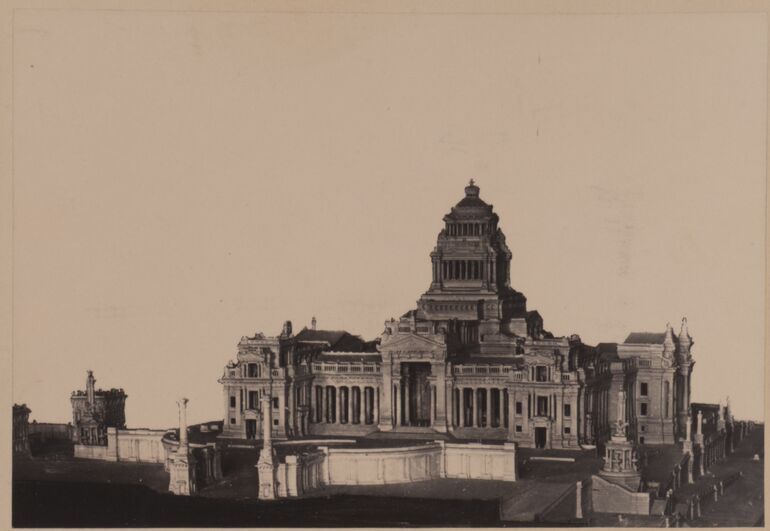 photograph, Gustav Klimt, Josef Hoffmann, Adolphe und Suzanne Stoclet, Fritz Waerndorfer, Carl Otto Czeschka am Bauplatz des Palais Stoclet, 281 (ehemals 303) Avenue de Tervueren, Brüssel, Anonym, MAK Inv.nr. WWF 137-4-2