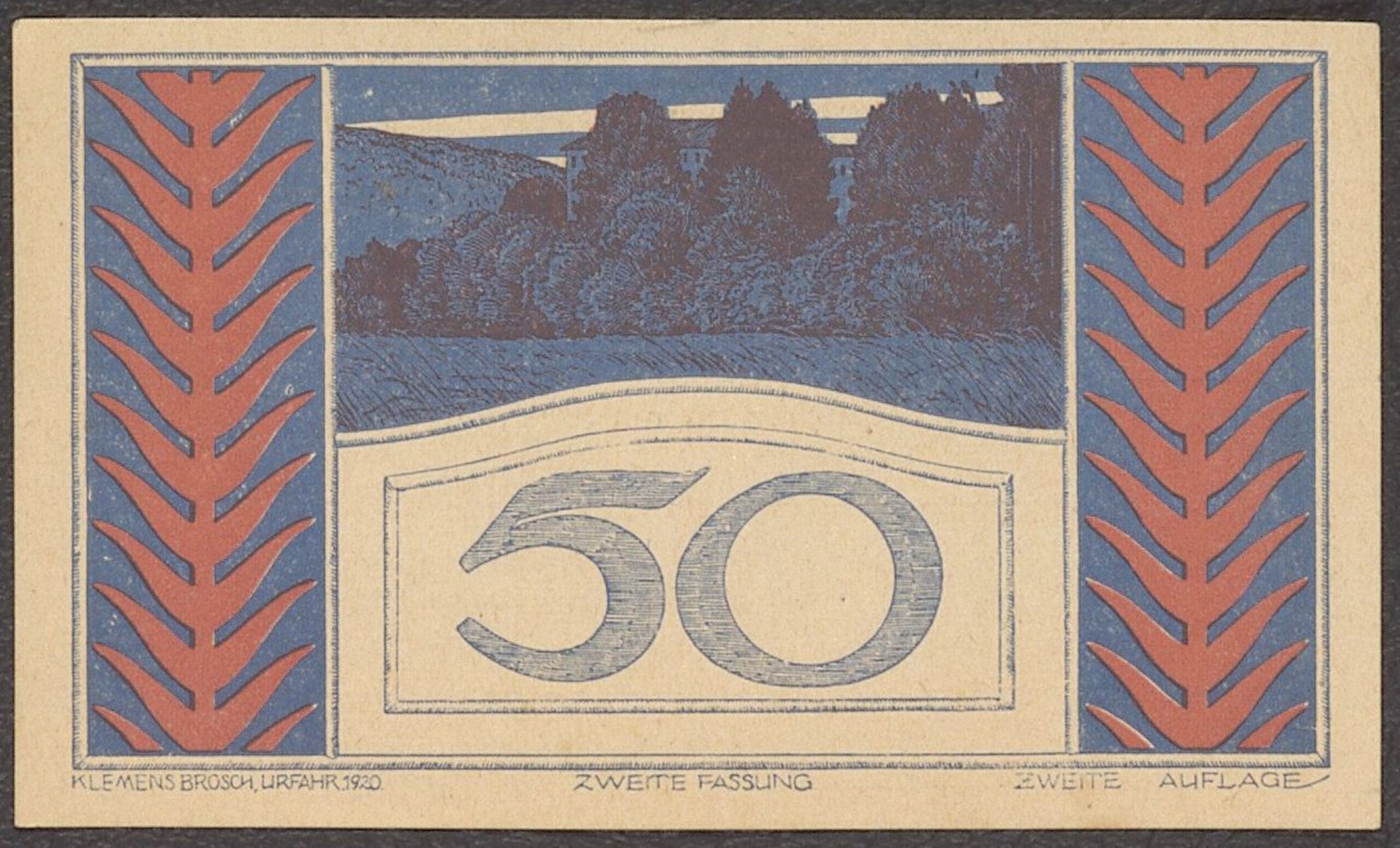 Notgeld, Gutschein der Gemeinde Puchenau im Wert von 50 Hellern, Klemens Brosch, MAK Inv.nr. KI 21484-4-97