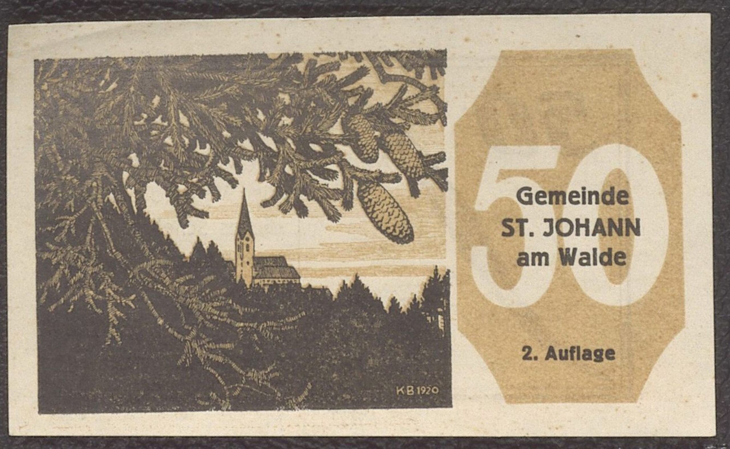 - Gutschein der Gemeinde St. Johann im Walde am Wert von 50 Hellern. 2. Auflage