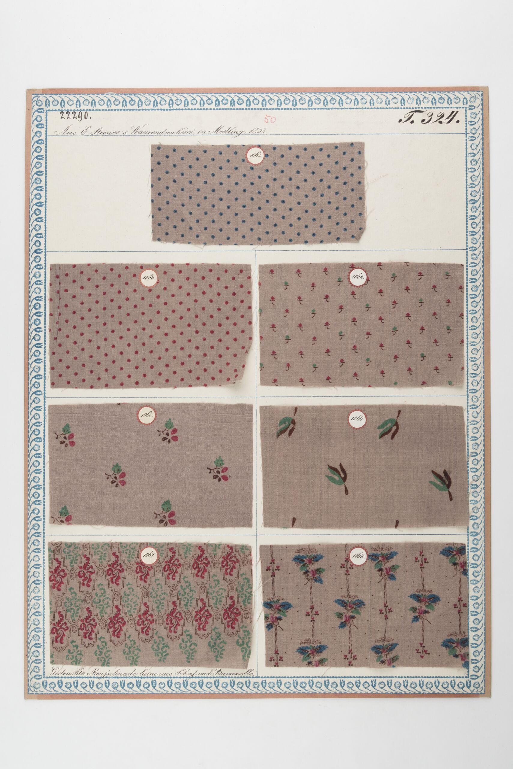 - label (front) : Aus E. Steiner's Waarendruckerei in Mödling, 1838. / Gedruckte Mousselines de laine aus Schaf- und Baumwolle.