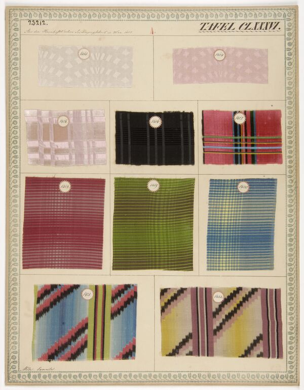- label (front) : Aus Chr. G. Hornbostel's Seidenzeugmanufactur in Wien, 1835. / Halbwollene Möbelstoffe.