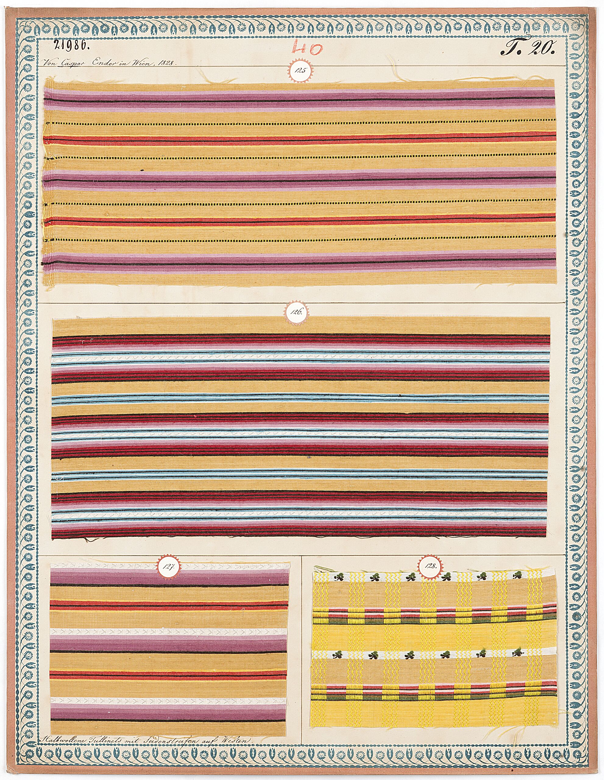 - label (front) : Von Ender in Wien, 1828. / Halbwollene Toilinets mit Seidenstreifen auf Westen.