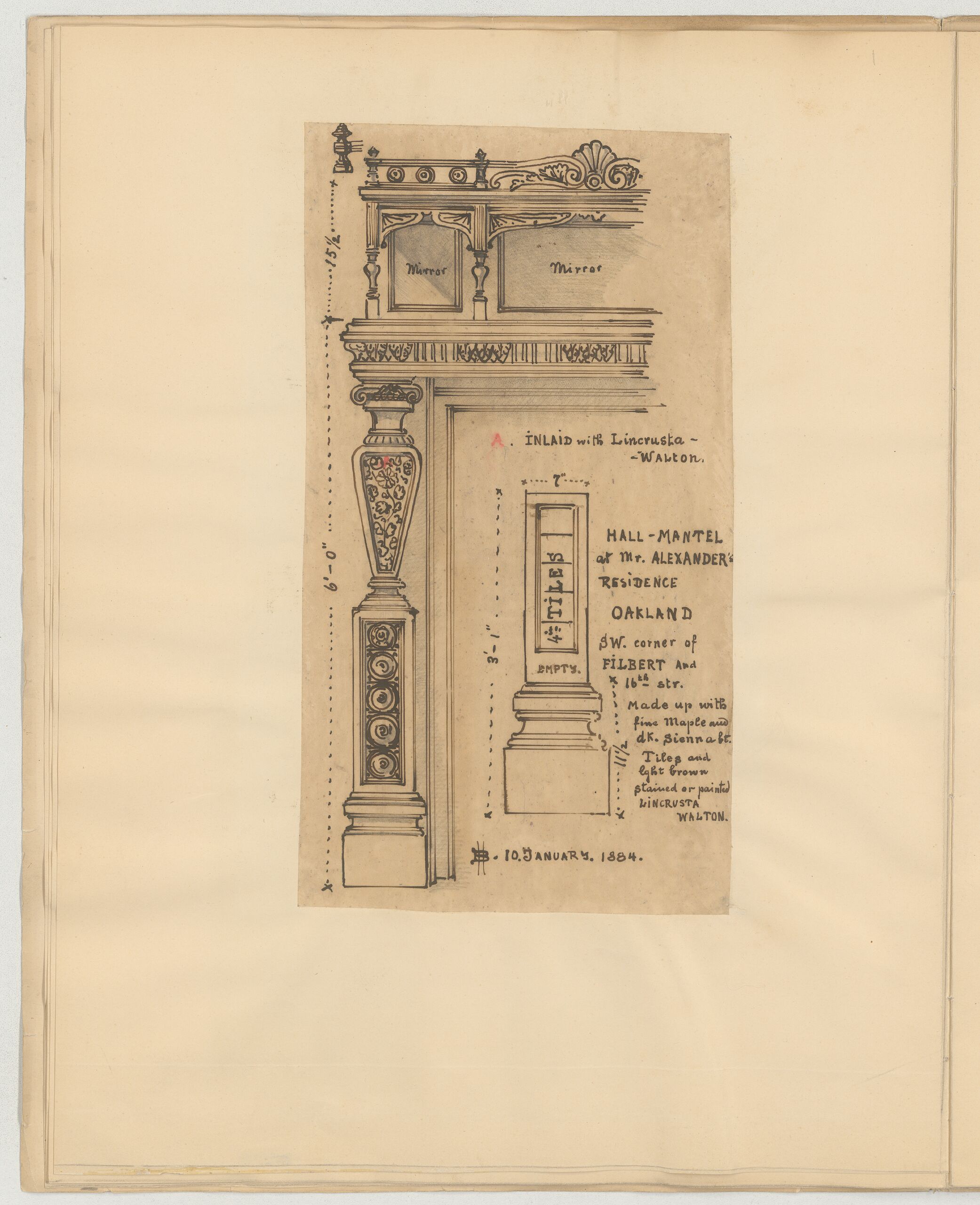 - Hall-Mantel at Mr. Alexander's Residence Oakland, SW. Corner of Filbert and 16th Str. (original-language title)