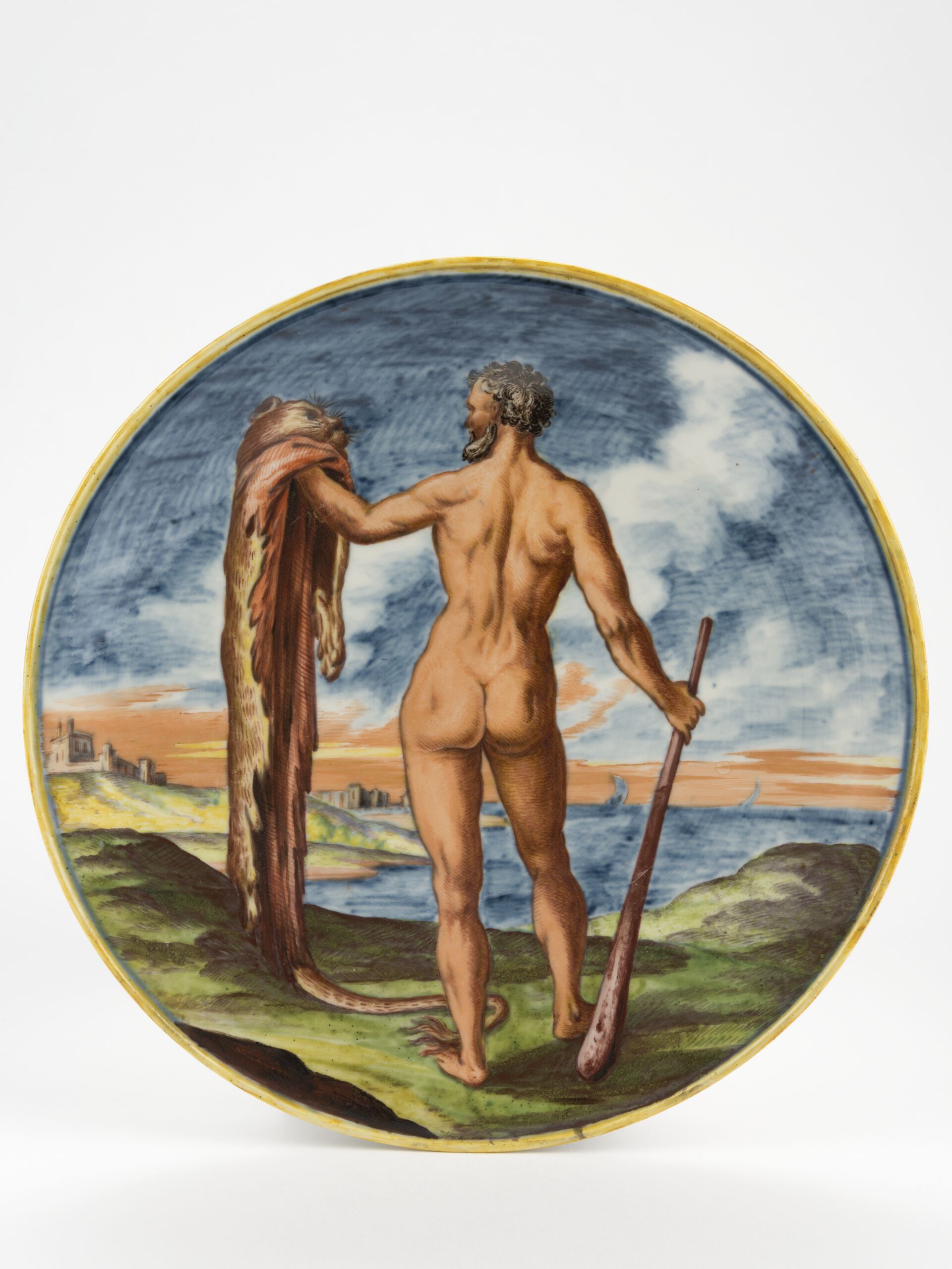 plate (dish), Herkules mit dem Fell des Nemëischen Löwen, Anonym, MAK Inv.nr. KE 7453-6