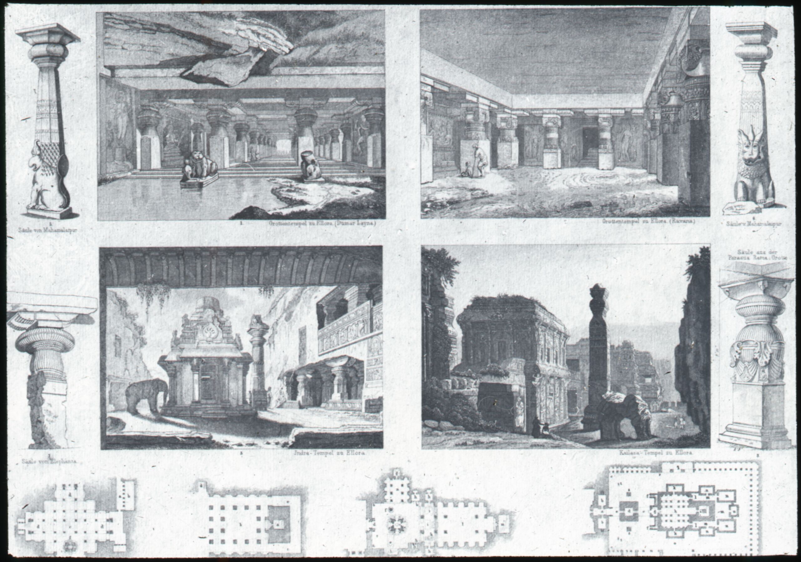 - Text am Objekt: Grottentempel zu Ellora (Dumar Layna). Grottentempel zu Ellora (Ravana). Jndra-Tempel zu Ellora. Kailasa-Tempel zu Ellora. Säule von Mahamalaipur. Säule von Elephanta. [...]