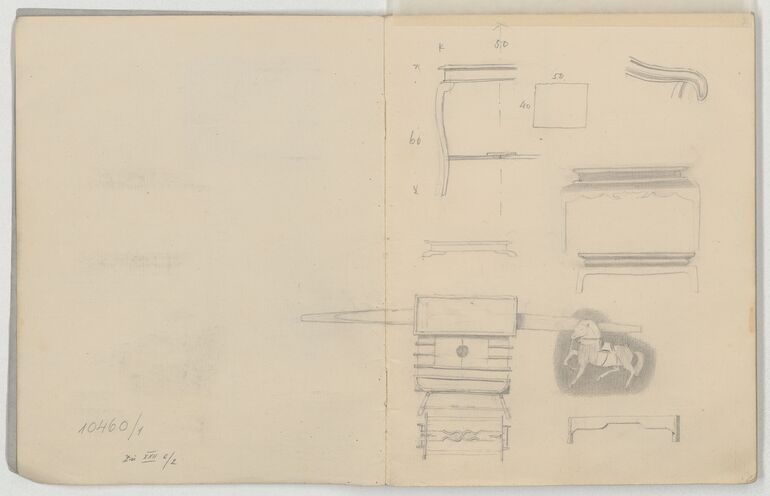 - Intarsienskizze mit der Darstellung eines Kentauren mit Krug und zwei weiblichen Gestalten in einem Hain (given title)