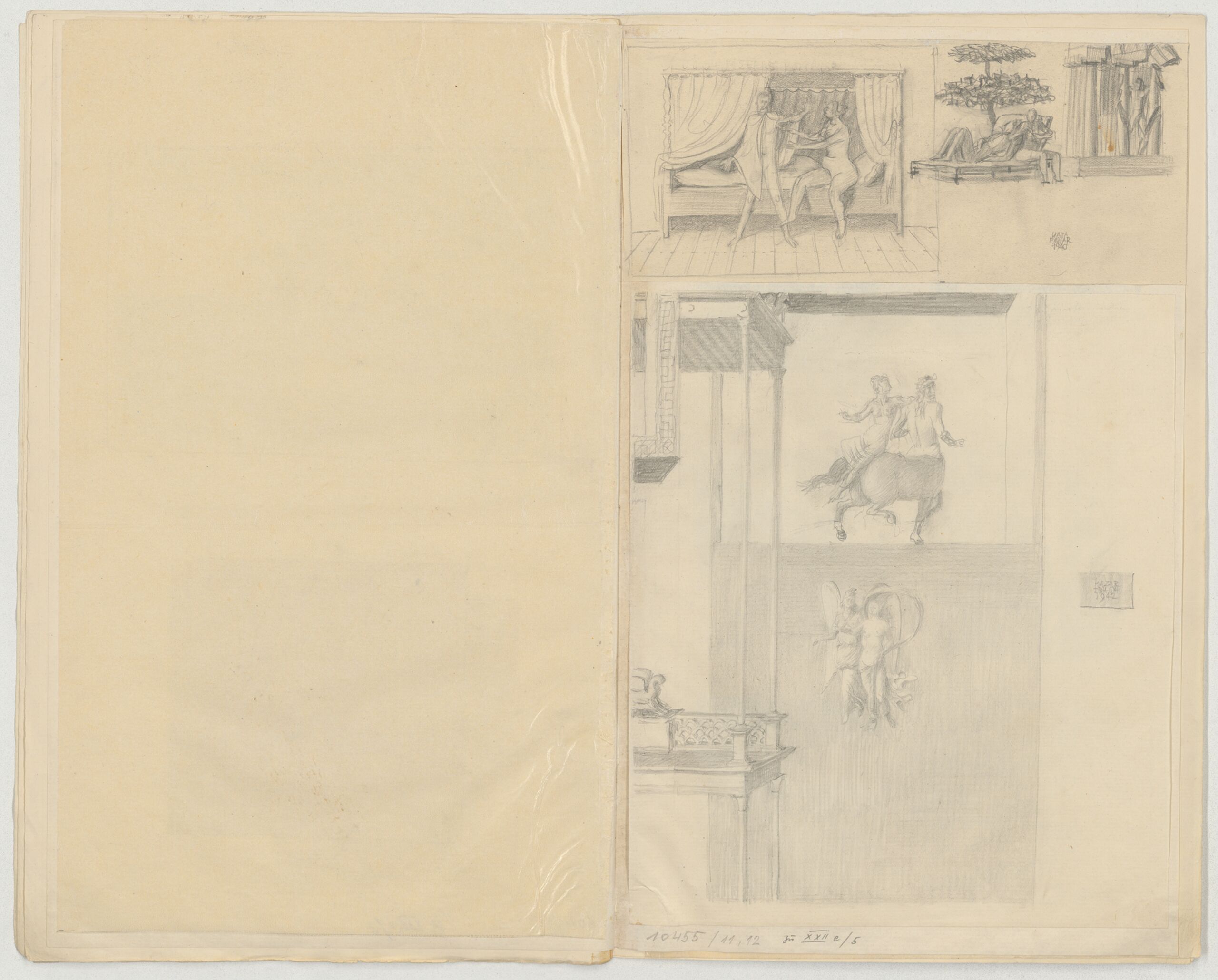 sketch, Intarsienskizze mit zwei Darstellungen von Paaren, Viktor Lurje, MAK Inv.nr. KI 10455-2-11
