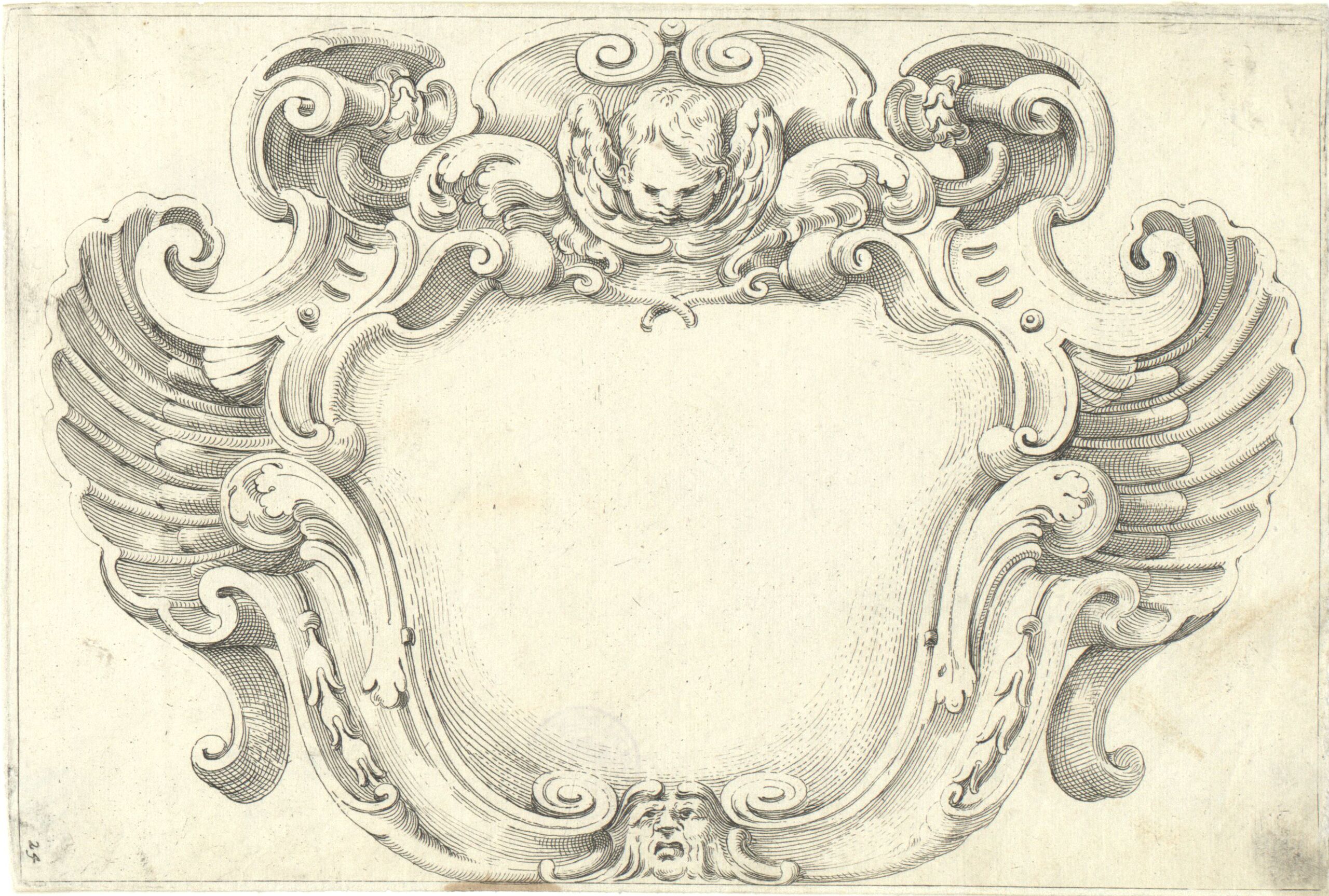 - Kartusche, Blatt 24 einer Folge von Kartuschen und Wandfüllungen, auf Blatt 1 die Widmung an Franco Maria Zambeccari, herausgegeben von Mariette (given title)