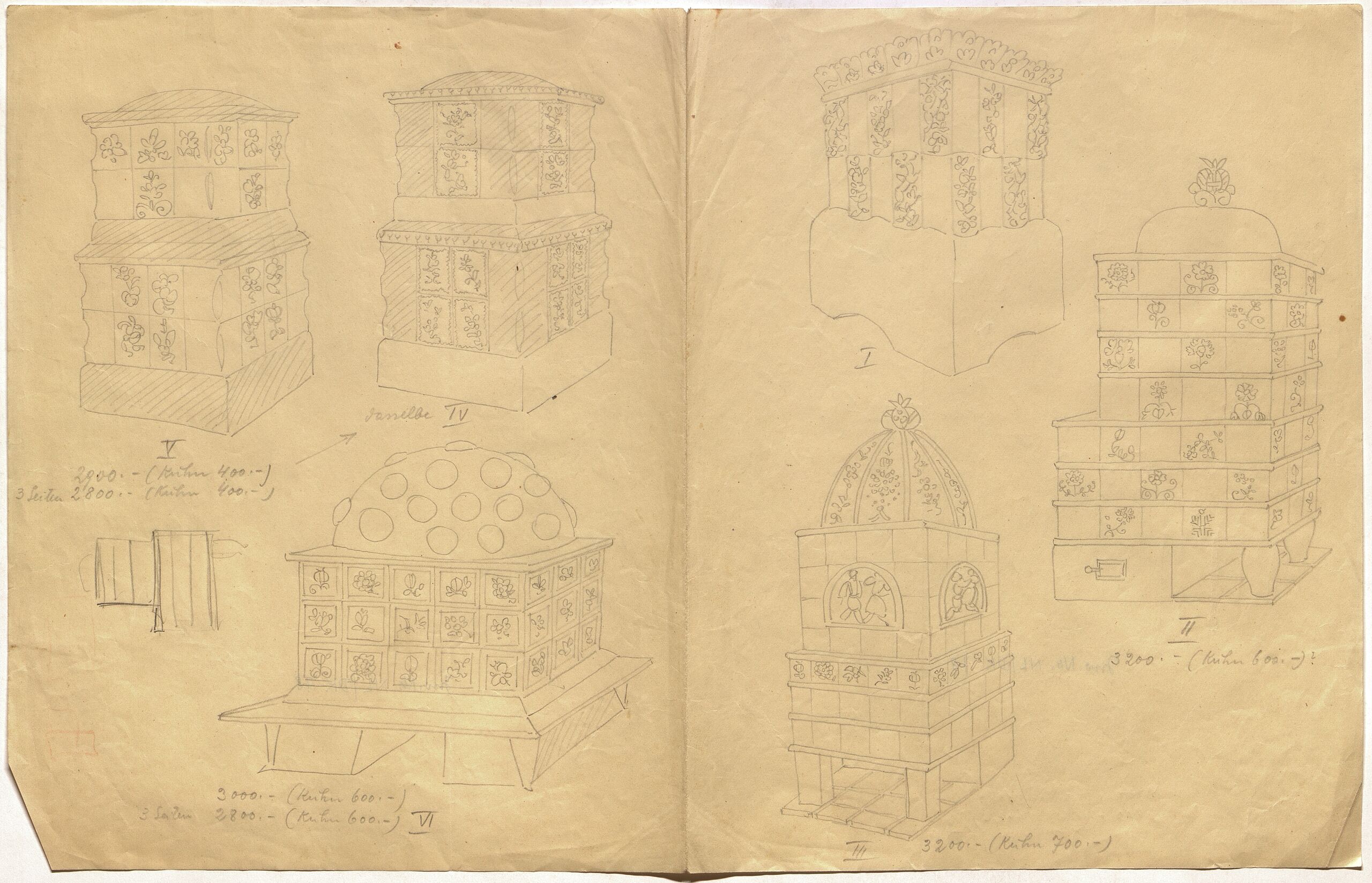 - Keramik: Kachelöfen "I" bis "VI" (descriptive title)