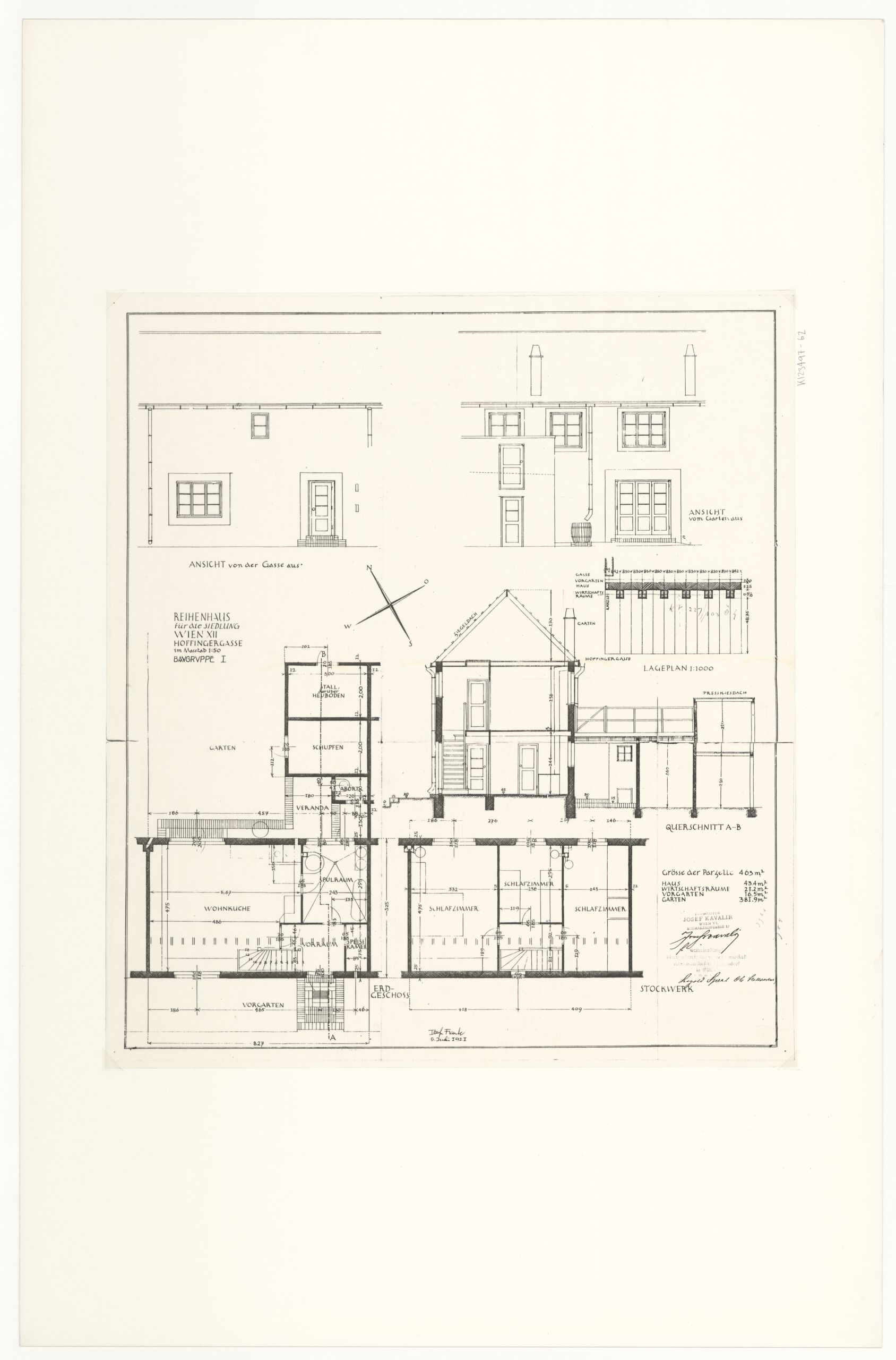 - Kopie des Entwurfs eines Reihenhauses für die Siedlung Wien XII Hoffingergasse. Grundrisse, Querschnitt, Lageplan und Anichten (given title)