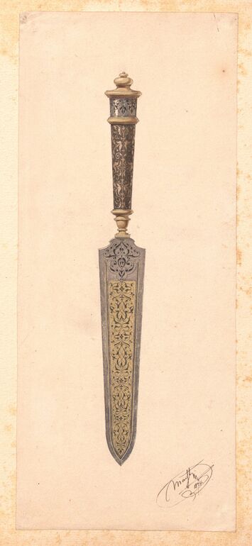 - text on object: Ornamentationsweise der Henri II. - Gefäße. (Vases d'Oiron) [Feder in Schwarz]