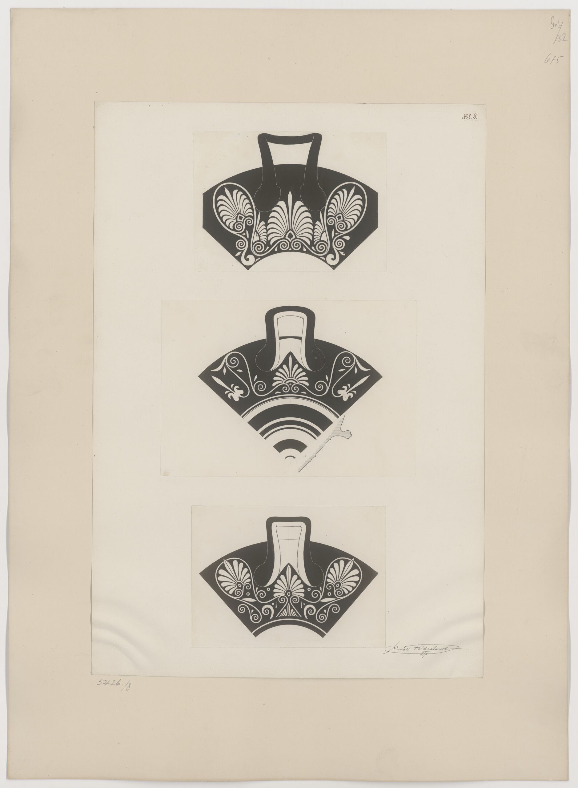 artwork copy, Kopie eines Ornaments aus Spiralen und stilisierten Palmblättern auf dem Rand eines antiken Tongefäßes von Rudolf Feldscharek, Rudolf Feldscharek, MAK Inv.nr. KI 5426-8-1