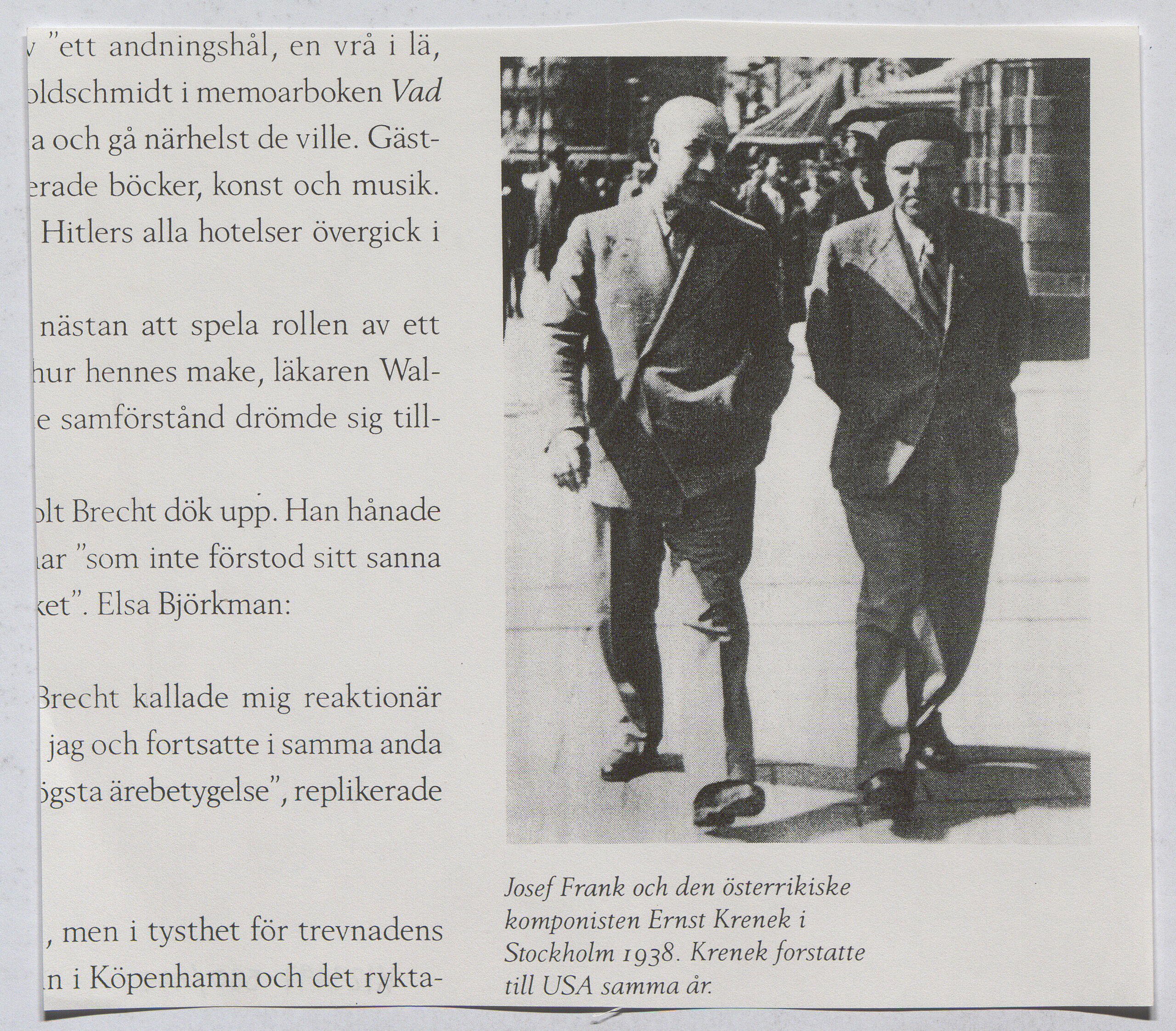 - Kopie eines Textes sowie einer Abbildung von Josef Frank und Ernst Krenek in Stockholm 1938 (given title)