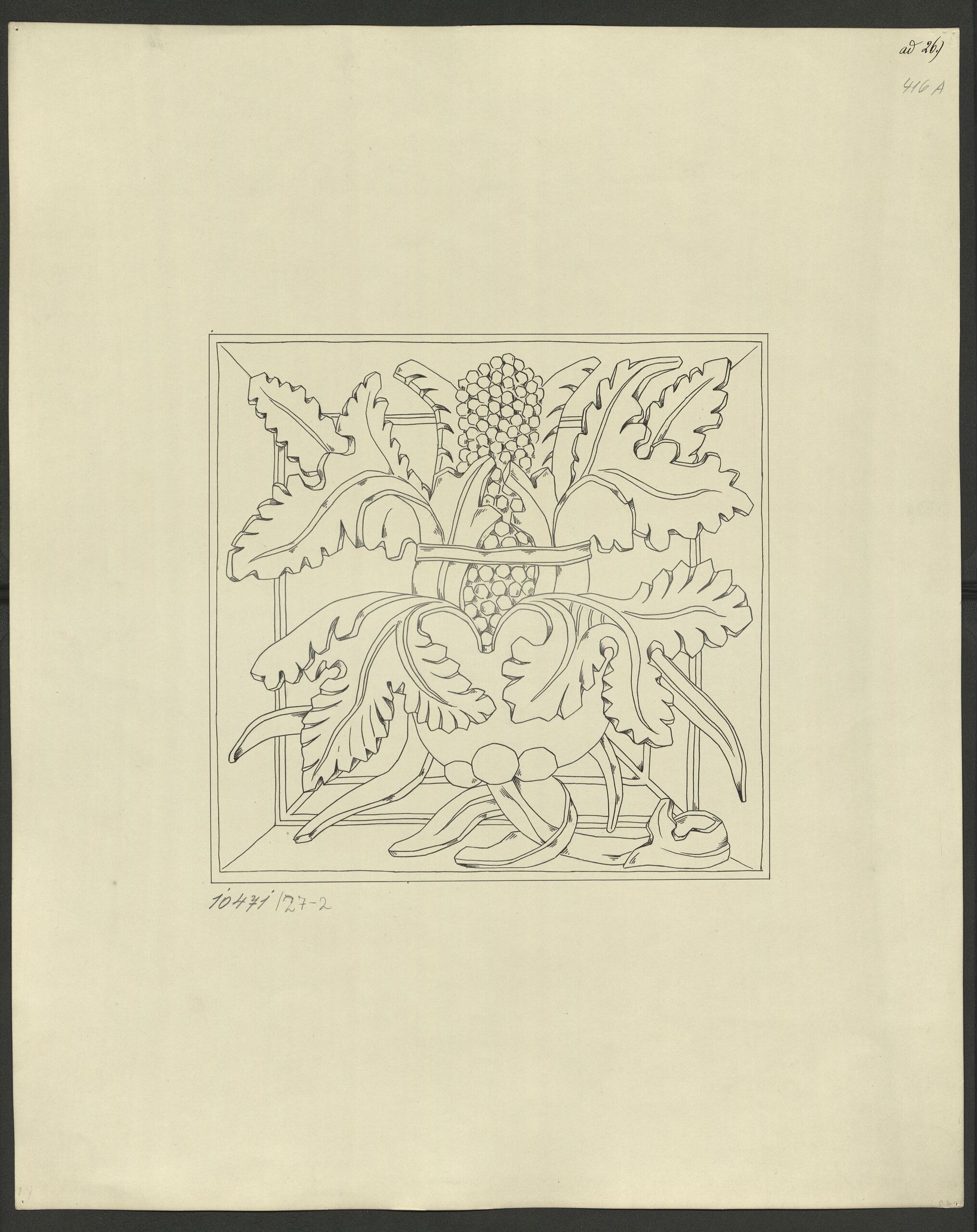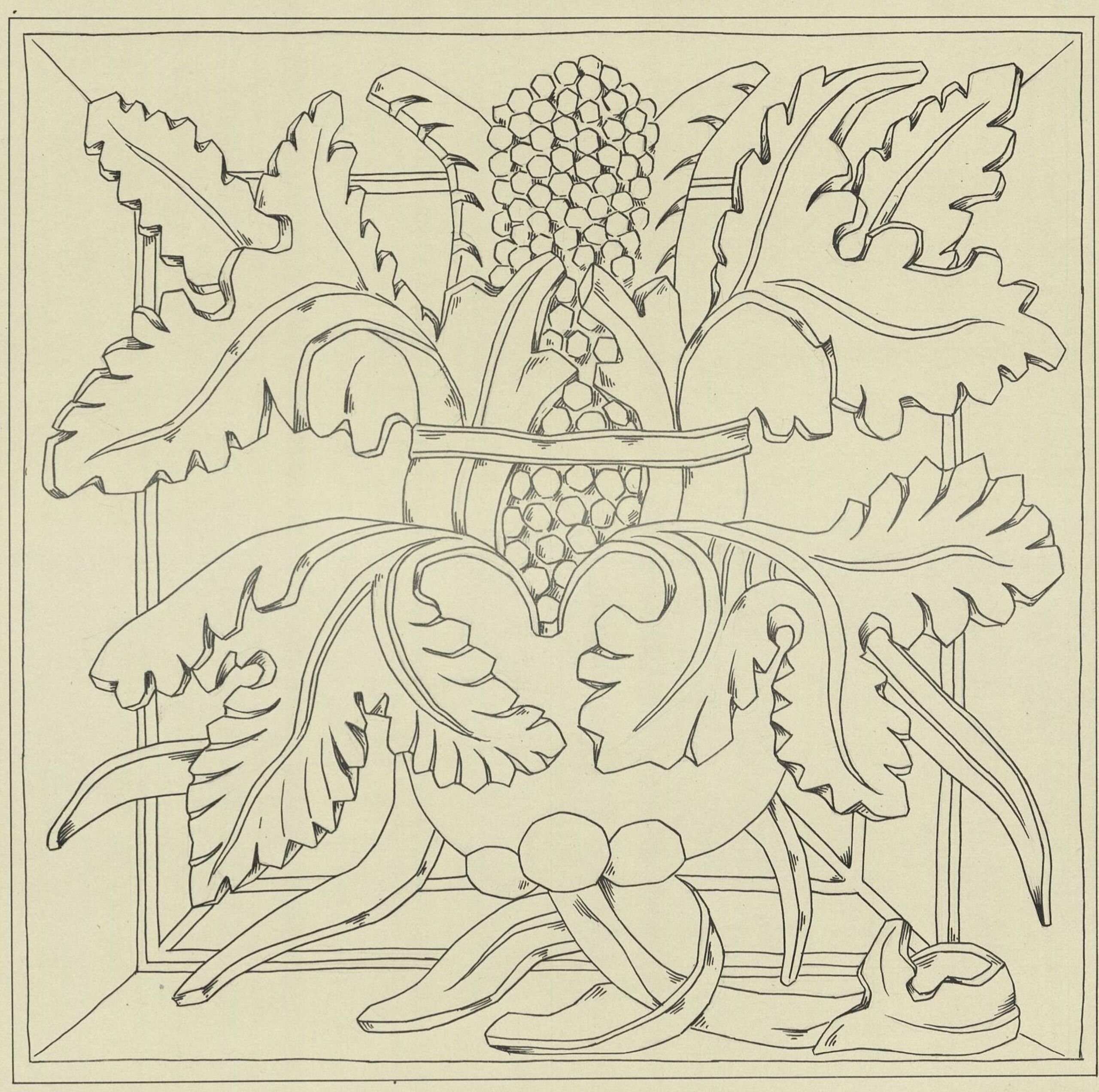 - Kopie in Tusche einer Kachel des gotischen Majolika-Ofens mit traubenähnlichem Fruchstand und Blättern in der Goldenen Stube der Festung Hohensalzburg von J. v. Grünberger (given title)