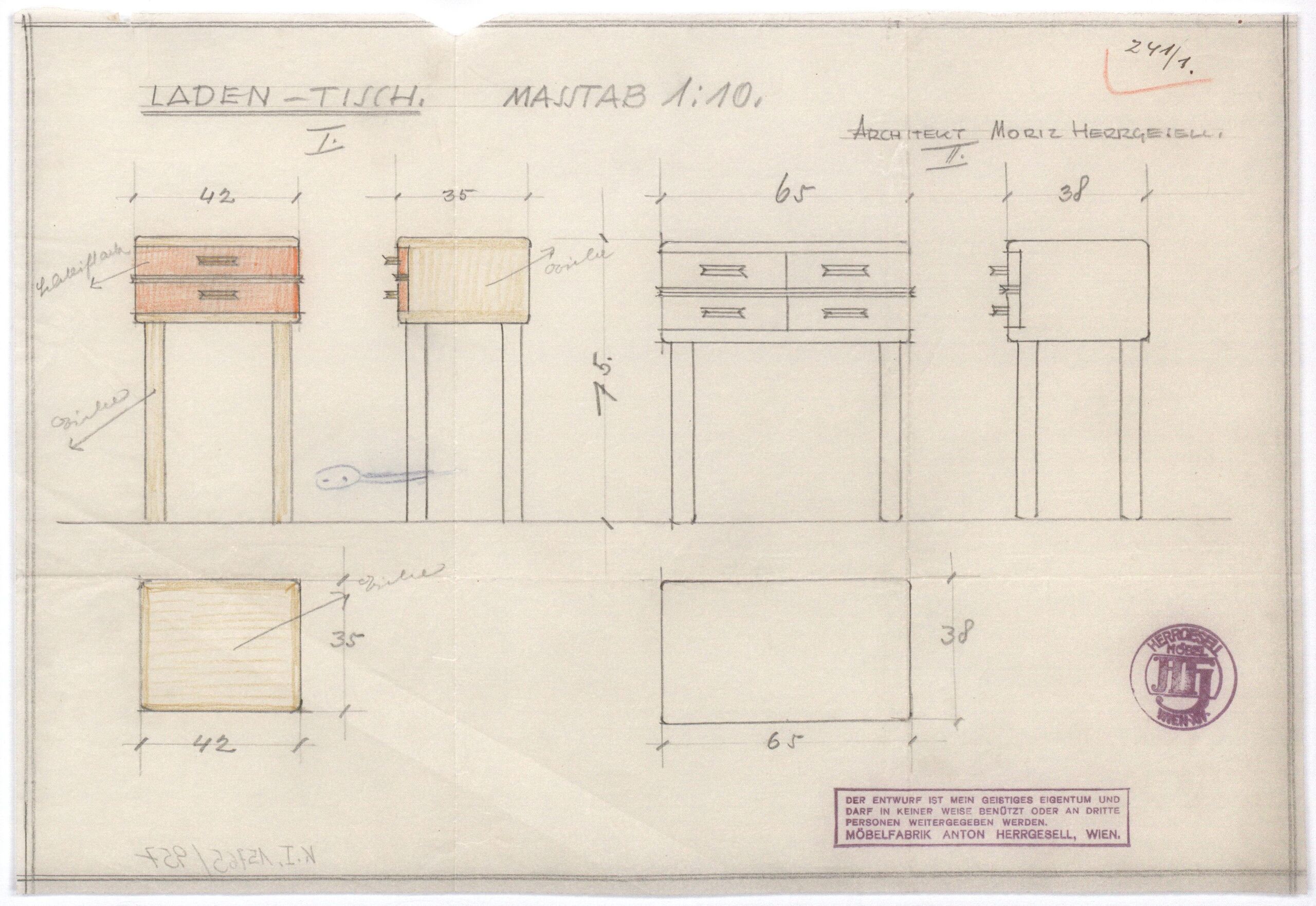 - text on object: Laden-Tisch / Arch. Moriz Herrgesell