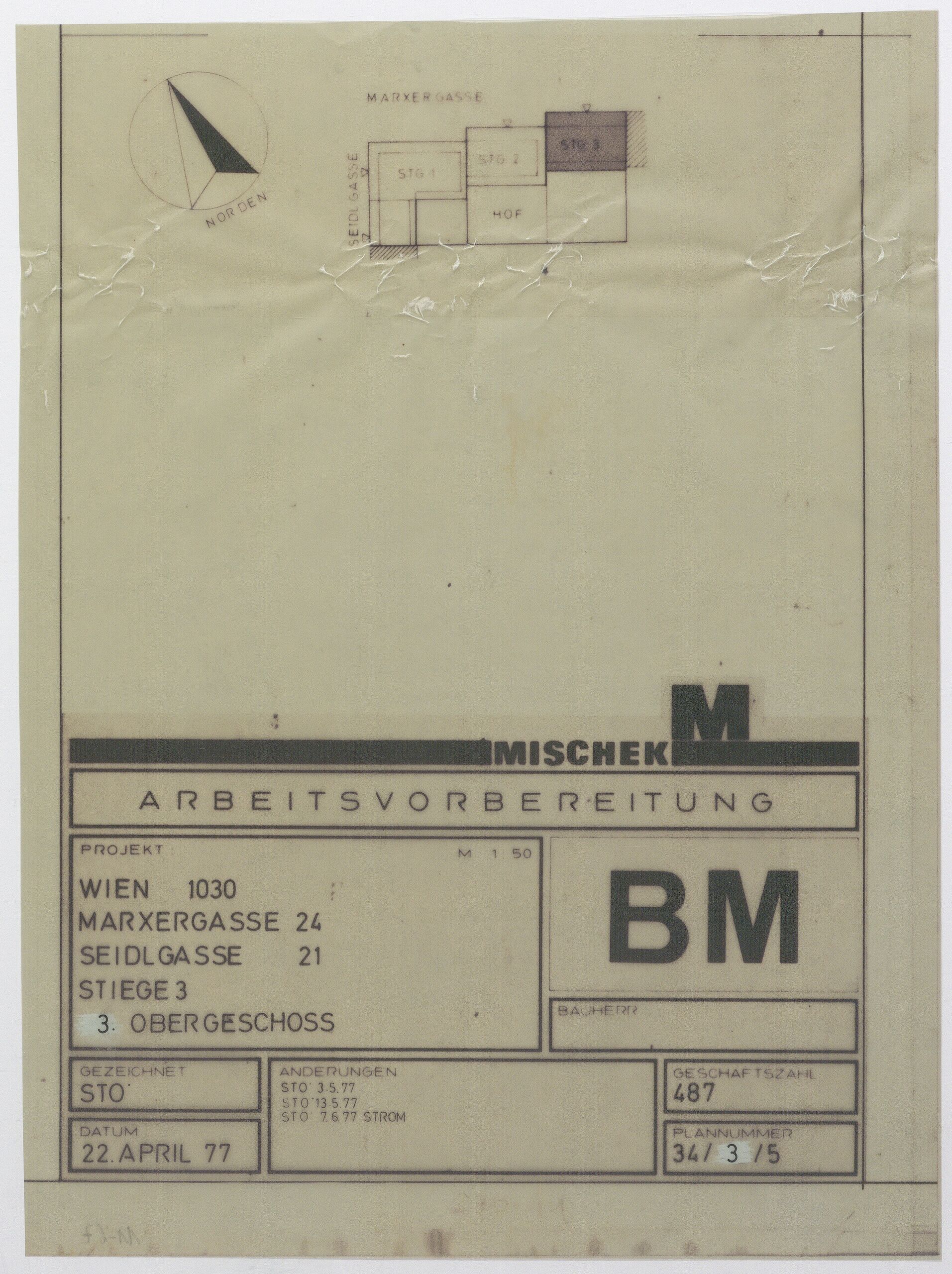 - date (rechts unten) : DATUM / 22. APRIL 77 / ÄNDERUNGEN STO 3.5.77 / STO 13.5.77 / STO 7.6.77