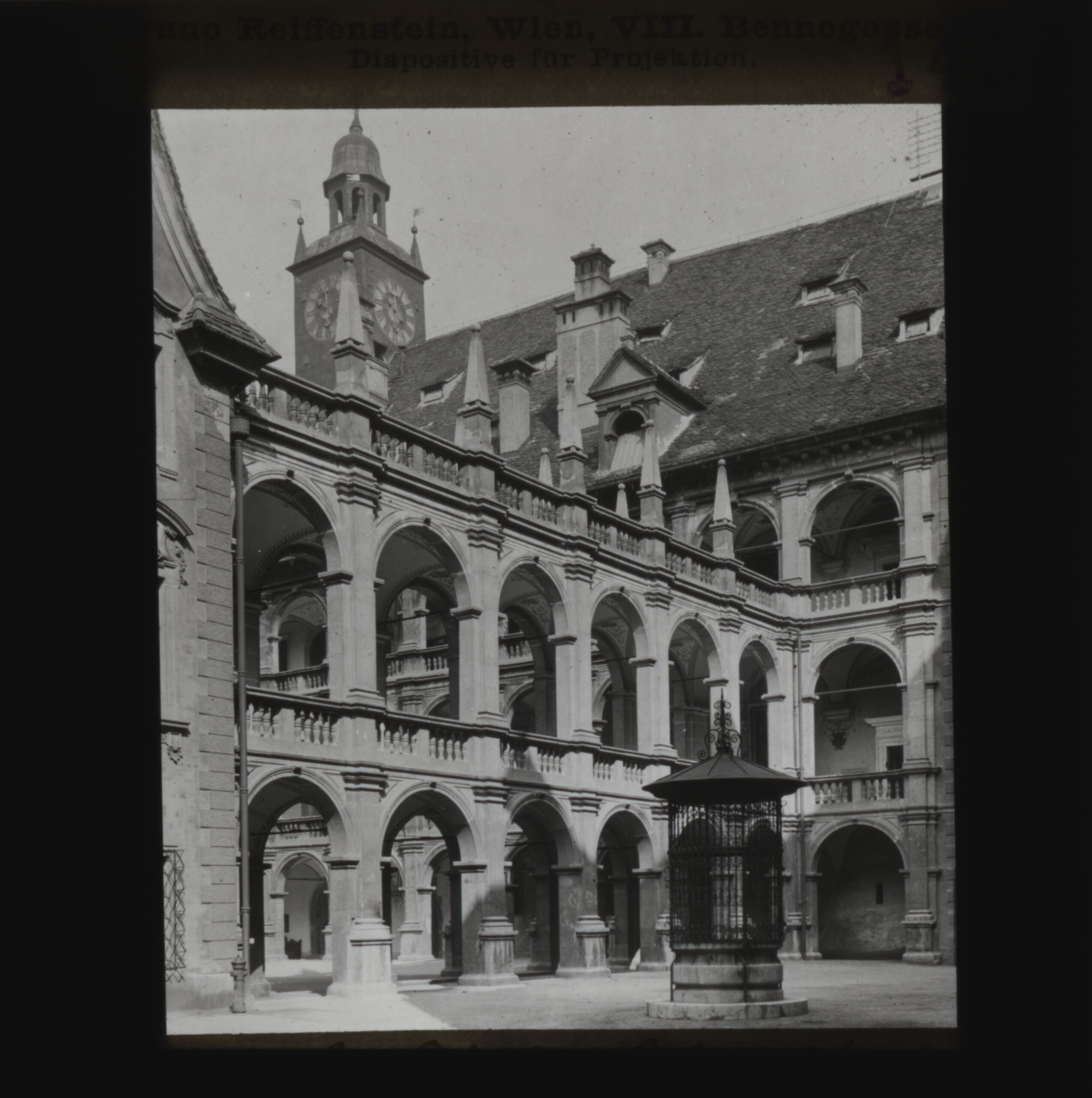 - text on object: Graz, Landhaus, Hofarchitectur. Bruno Reiffenstein, Wien, VIII. Bennogasse 24. Diapositive für Projektion.