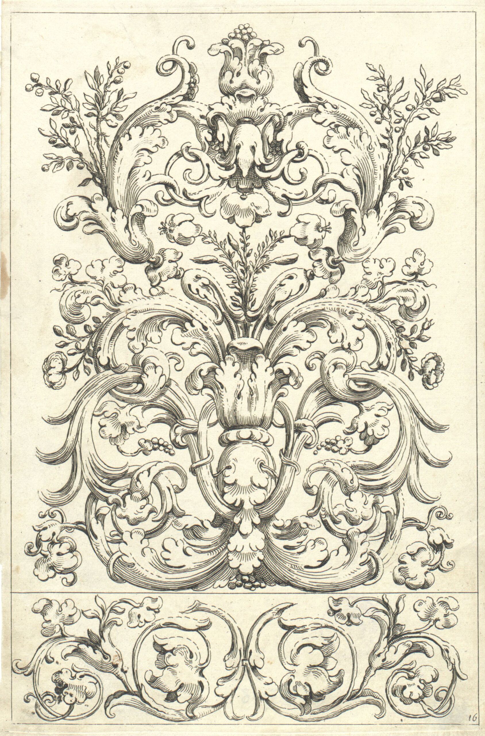 - Laubwerkfüllung, Blatt 16 einer Folge von Kartuschen und Wandfüllungen, auf Blatt 1 die Widmung an Franco Maria Zambeccari, herausgegeben von Mariette (given title)