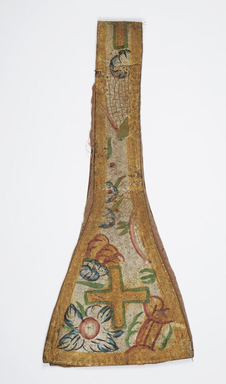 chasuble (liturgical vestment), Lederkasel, Stab in gold, Seitenteile in silber mit bunte Blumenmotive, Anonym, MAK Inv.nr. LE 118-1
