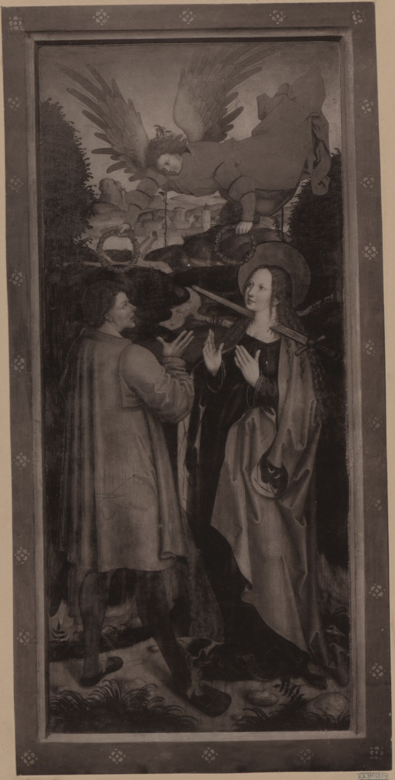 - Text am Objekt (Untersatzkarton, rechts unten) : Die heilige Lucia/ ebenfalls von Zeitbloom, und dem k. Nationalmuseum zu München gehörig.