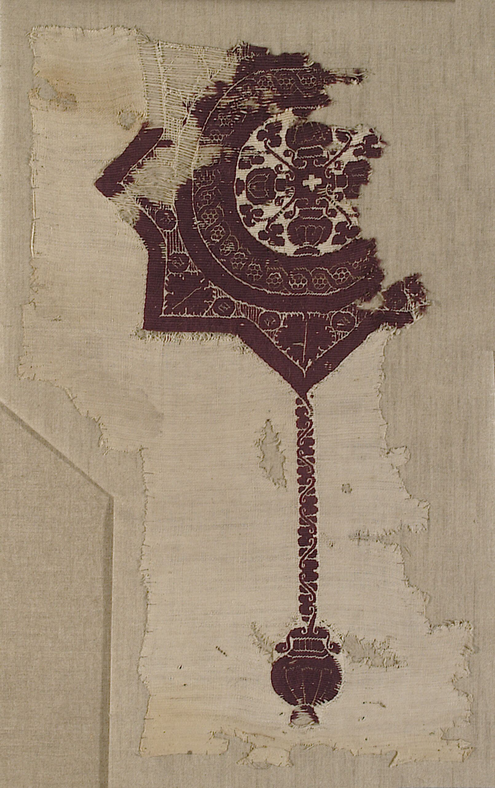- Linen weave with star-shaped decorative element and fillet with vase als pendant (sigillum); vases and vine leaves surrounded by interlacing (descriptive title)