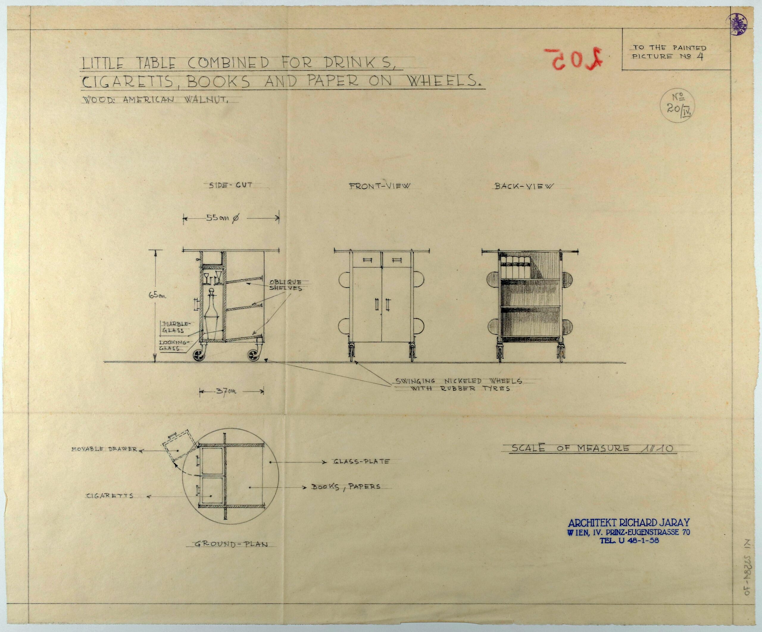 - stamp (rechts unten) : ARCHITEKT RICHARD JARAY/ WIEN, IV. PRINZ=EUGENSTRASSE 70/ TEL. U 48-1-58