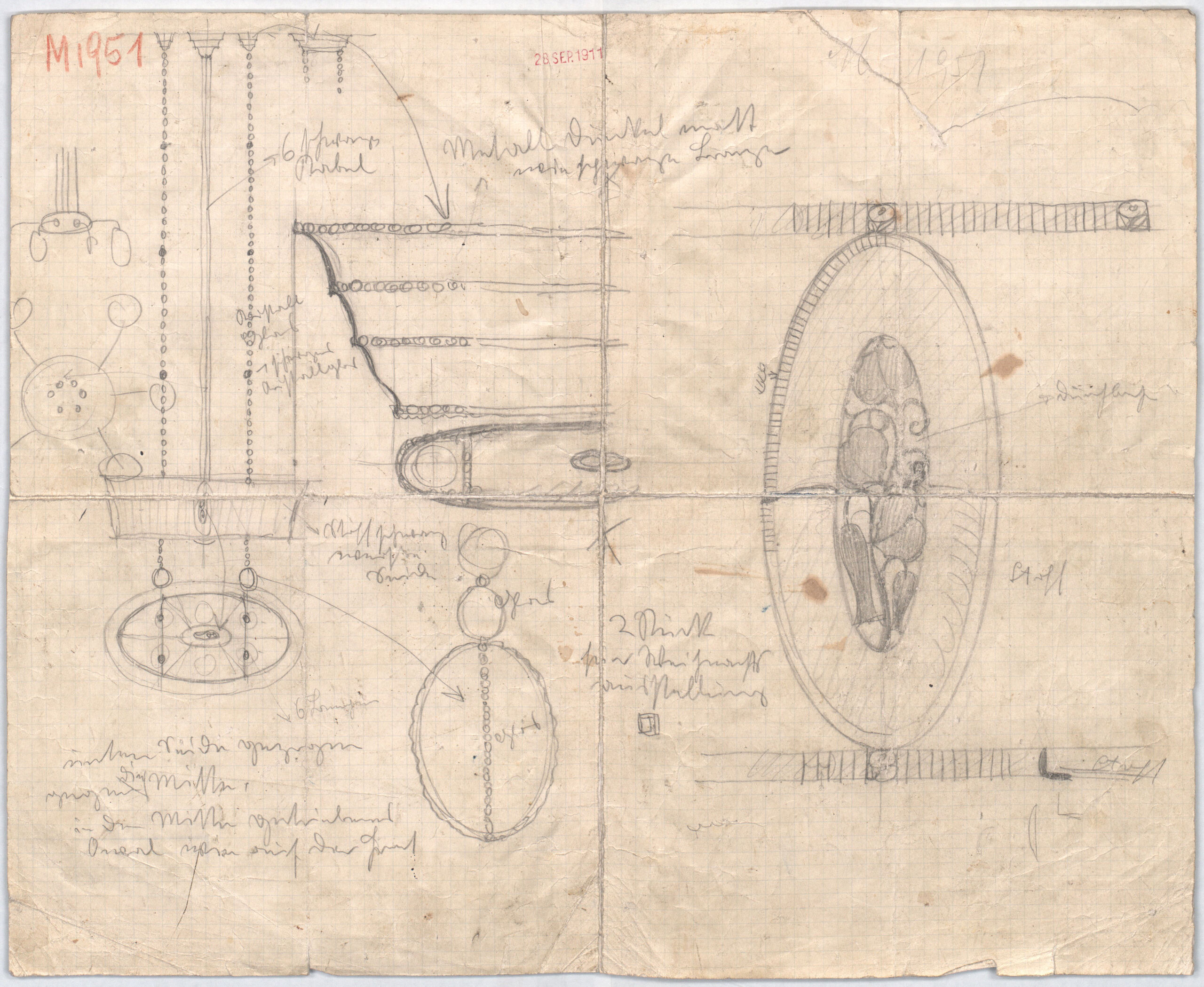 - text on object: 28. SEP. 19116 schwarze KabelKristallglas 1 schwarzes KristallglasMetall dunkel mattrein schwarze BronzeStoff schwarz weiße Seide unten Seide gezogen gegen die Mittein der Mitte getriebenes Oval wie auf der Seite (...)2 Stück für Weihnachtsausstellung