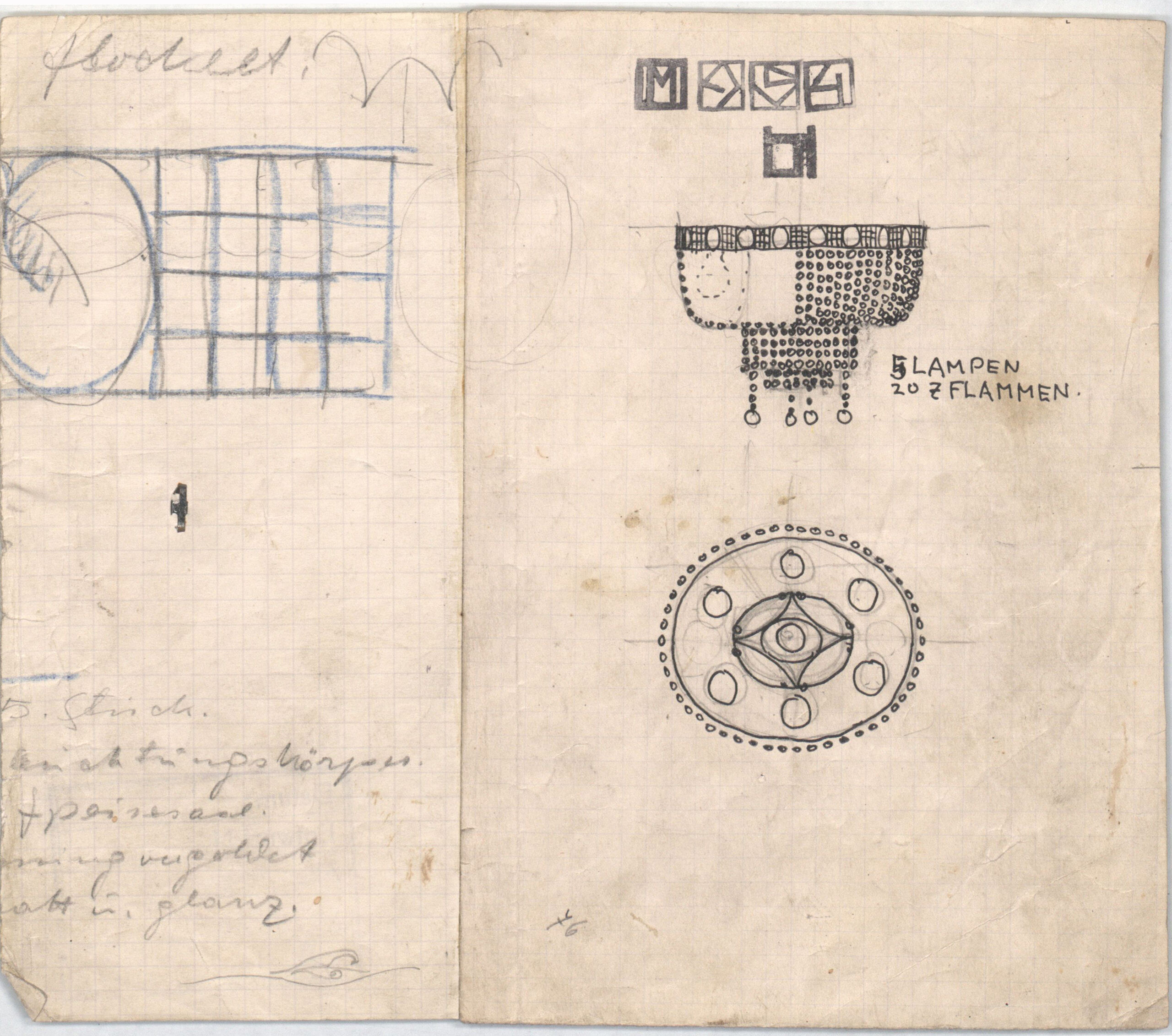 design, "Luster 7-flammig mit Glasbehänge" Speisesaal, Palais Stoclet, Brüssel, Wiener Werkstätte, MAK Inv.nr. KI 12100-3