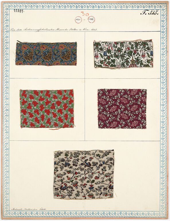 - label (front) : Aus Chr. G. Hornbostel's Fabrik in Wien, 1836. / Mäntelstoffe.