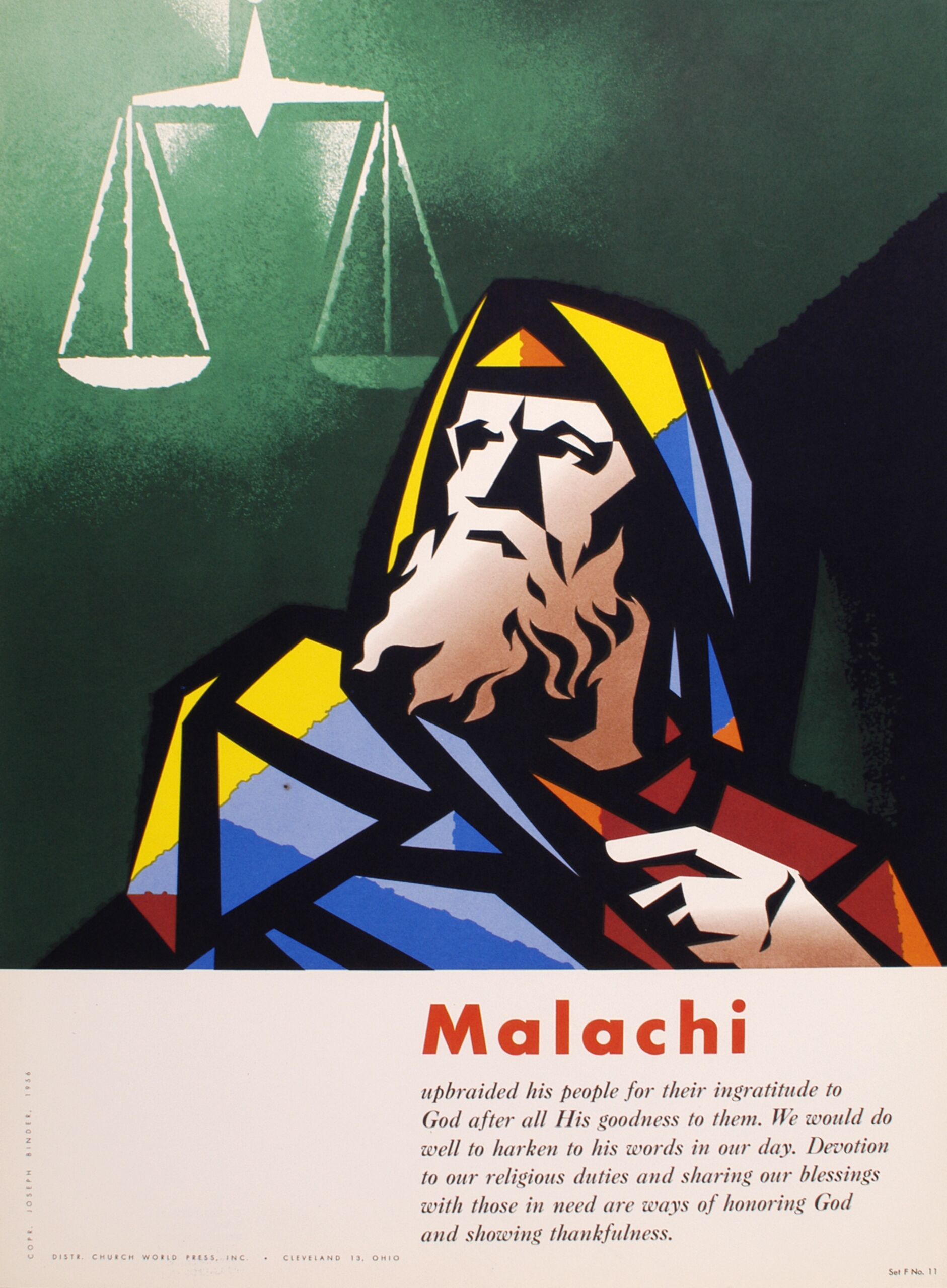- text on object: Malachi upbraided his people for their ingratitude to God after all His goodness to them. We would do well to harken to his words in our day. Devotion to our religious duties and sharing our blessings with those in need are ways of honoring God and showing thankfulness. Set f No.11