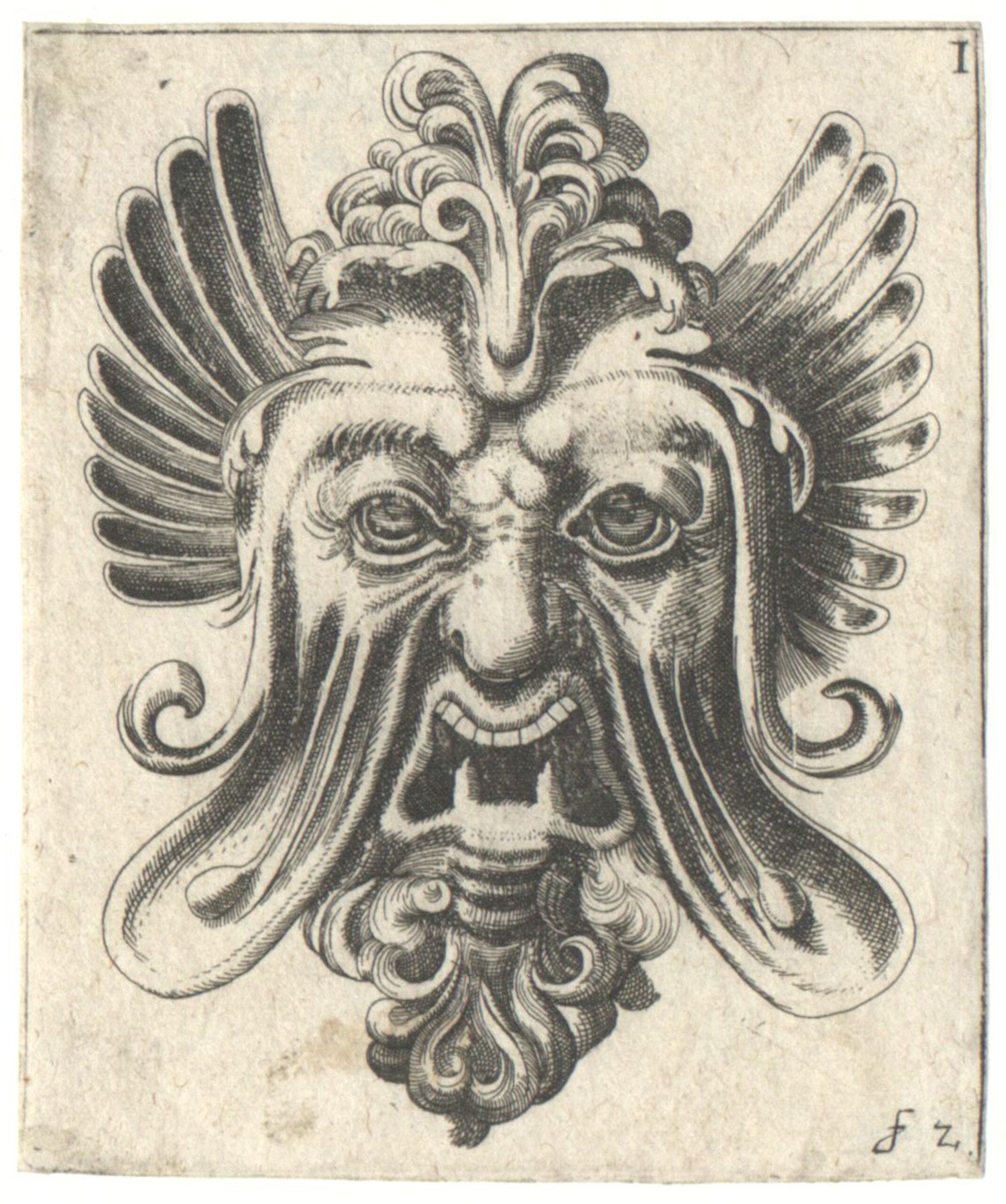 - Maskenkopf, Blatt 1 aus einer Folge von Aufsatzhälften und Masken, Kopien nach Frans Huys (given title)