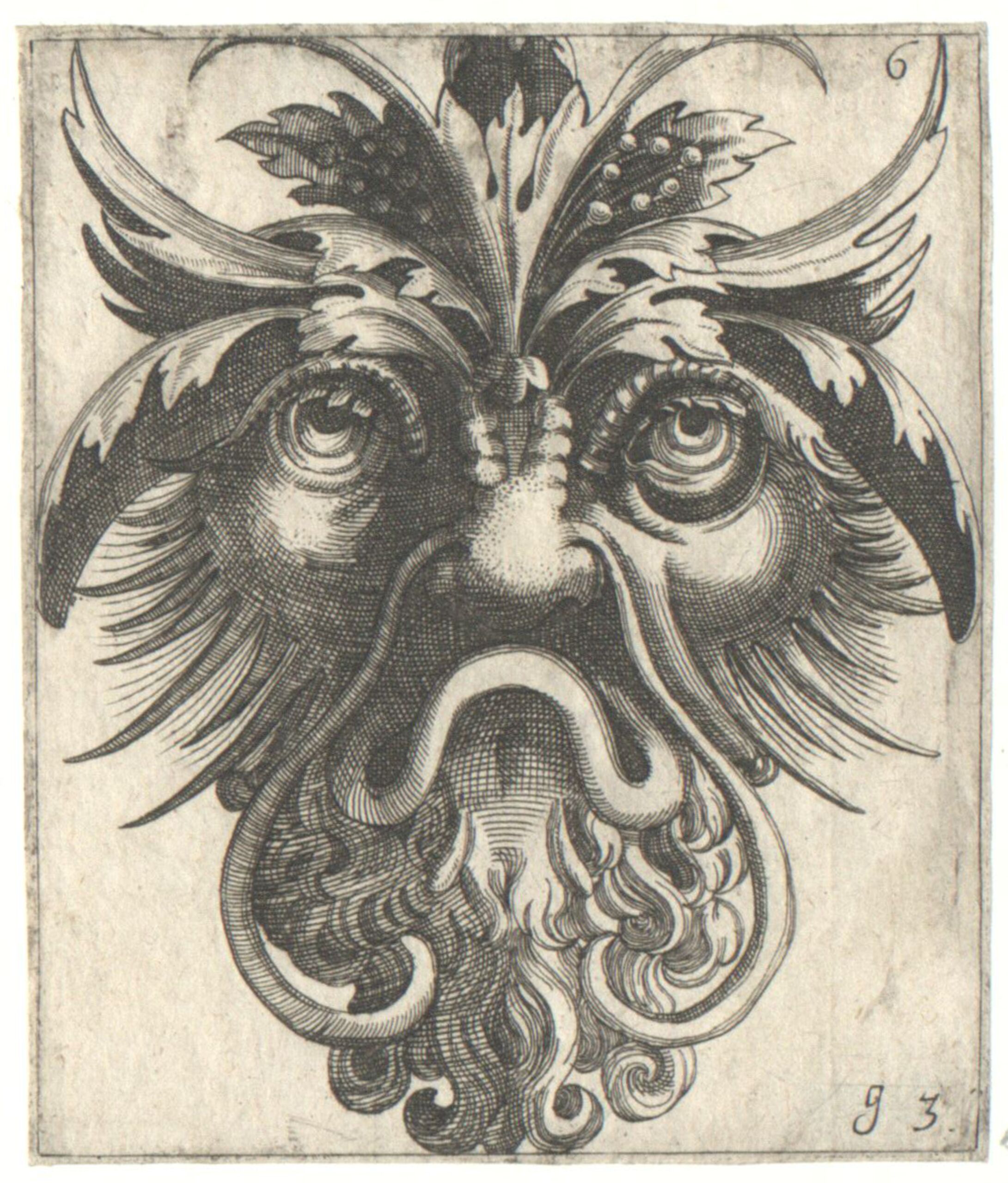 - Maskenkopf, Blatt 6 aus einer Folge von Aufsatzhälften und Masken, Kopien nach Frans Huys (given title)
