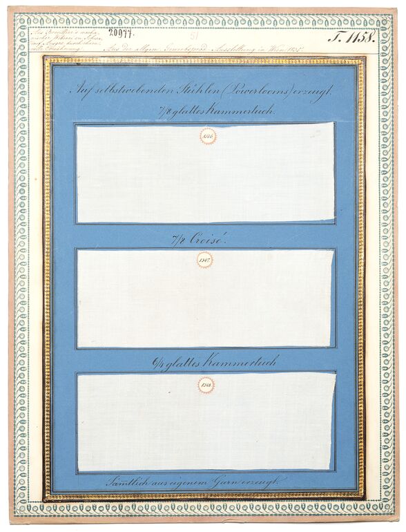 - label (front) : Aus der Hornbostl'schen Seidenzeugfabrik in Wien 1827. / Mode Sammte.