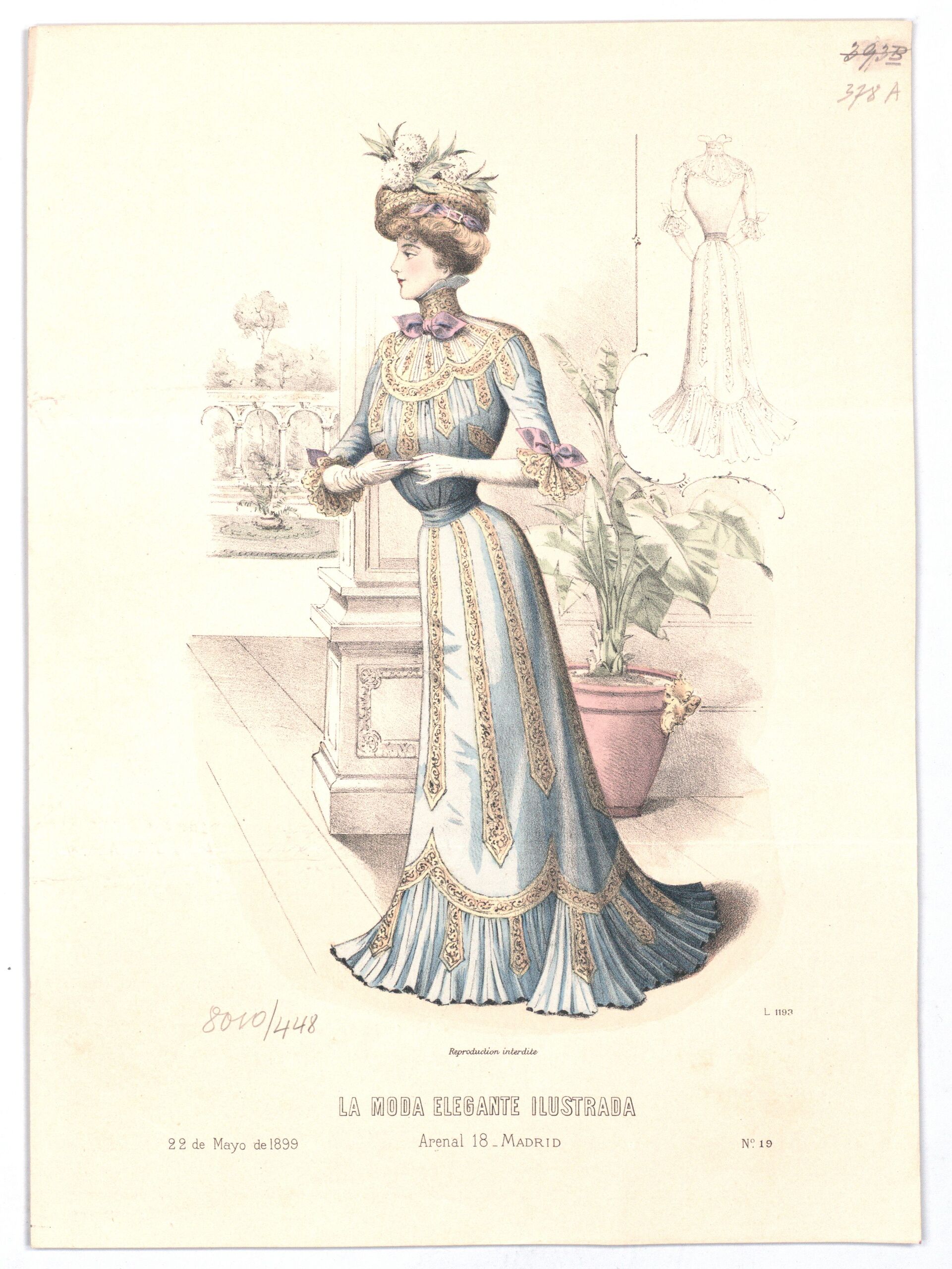 - text on object: L 1193; 22 de Mayo de 1899; Reproduction interdite / LA MODA ELEGANTE ILUSTRADA / Arenal 18 MADRID; N° 19