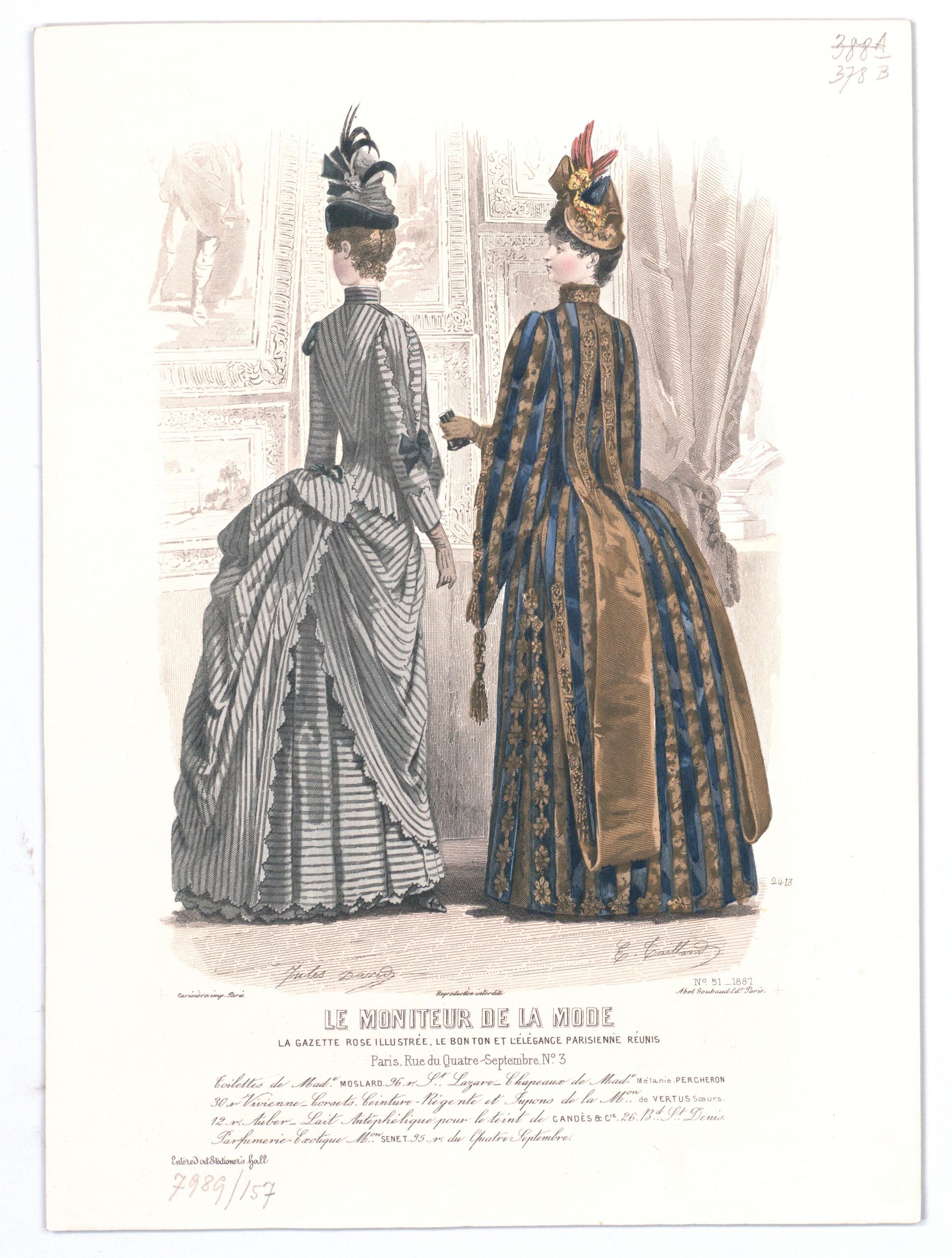 - text on object: 2413; Jules David; E. Tailland; N° 51 1887; Lariviere imp. Paris; Reproduction Interdite; Abel Goubaud Ed. Paris; Le Moniteur de la Mode, la gazette rose le bon ton & l'elégance parisienne réunis; Paris. Rue du Quatre-Septembre. N° 3 / [...] / Entered at Stationer's Hall