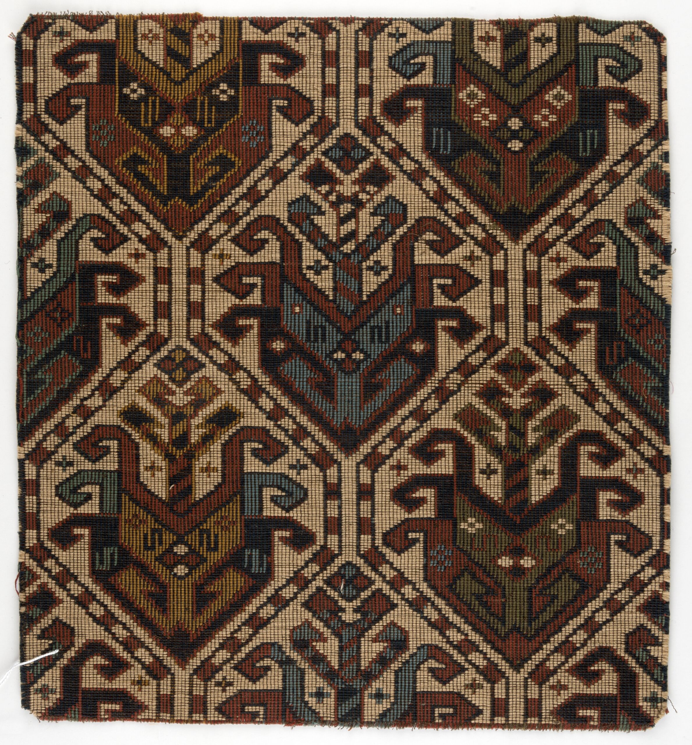fabric swatch, Möbelstoffmuster; geometrisches Muster auf hellem Grund, Philipp Haas & Söhne, MAK Inv.nr. TGMZ 2639