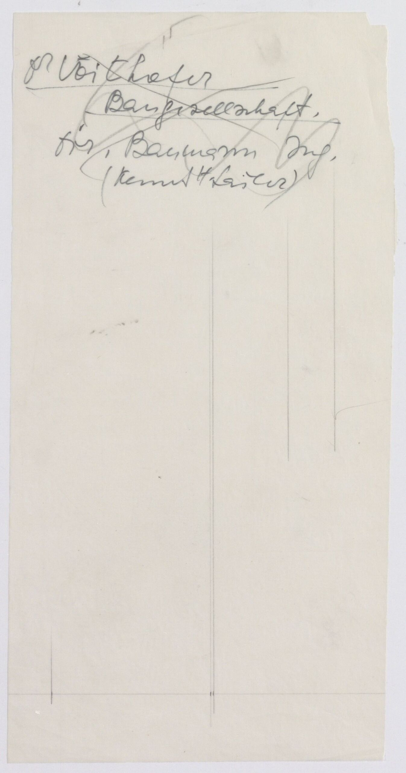 - text on object (oben) : Dr Voithofer / Baugesellschaft / Dir. Baumann Ing. / (kennt H. Sailer) [durchgestrichen]