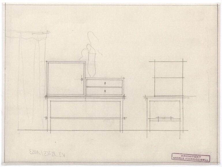 - Wandabwicklung, Original plans for the interior of the Wehtje house in Falsterbo by Josef Frank