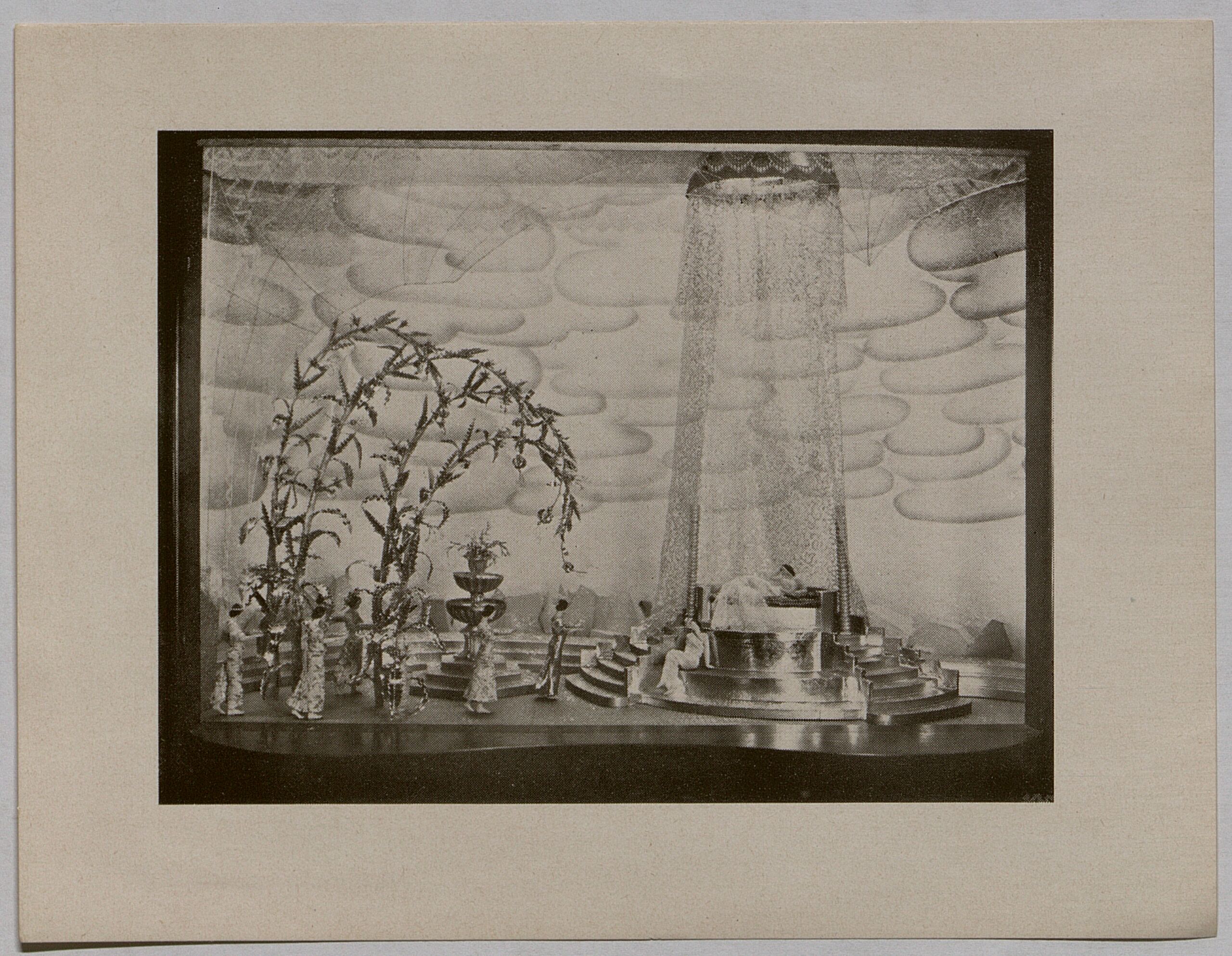 - Photograph of the stage set “The Flower in the Service of the Stage” by Otto Prutscher and Remigius Geyling at the exhibition “Flower and Sculpture” at the Vienna Künstlerhaus in 1931 (given title)