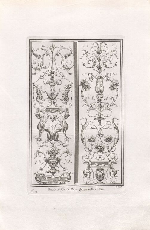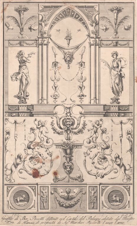 - „Pitture del Poccetti combinate da vari Luoghi.“, Blatt 4 aus der Folge „Ornati Presi da Graffiti, e Pitture antiche Esistenti in Firenze disegnati e incisi in 40. Rami da Carlo Lasinio Trevigiano etc.“ (given title)