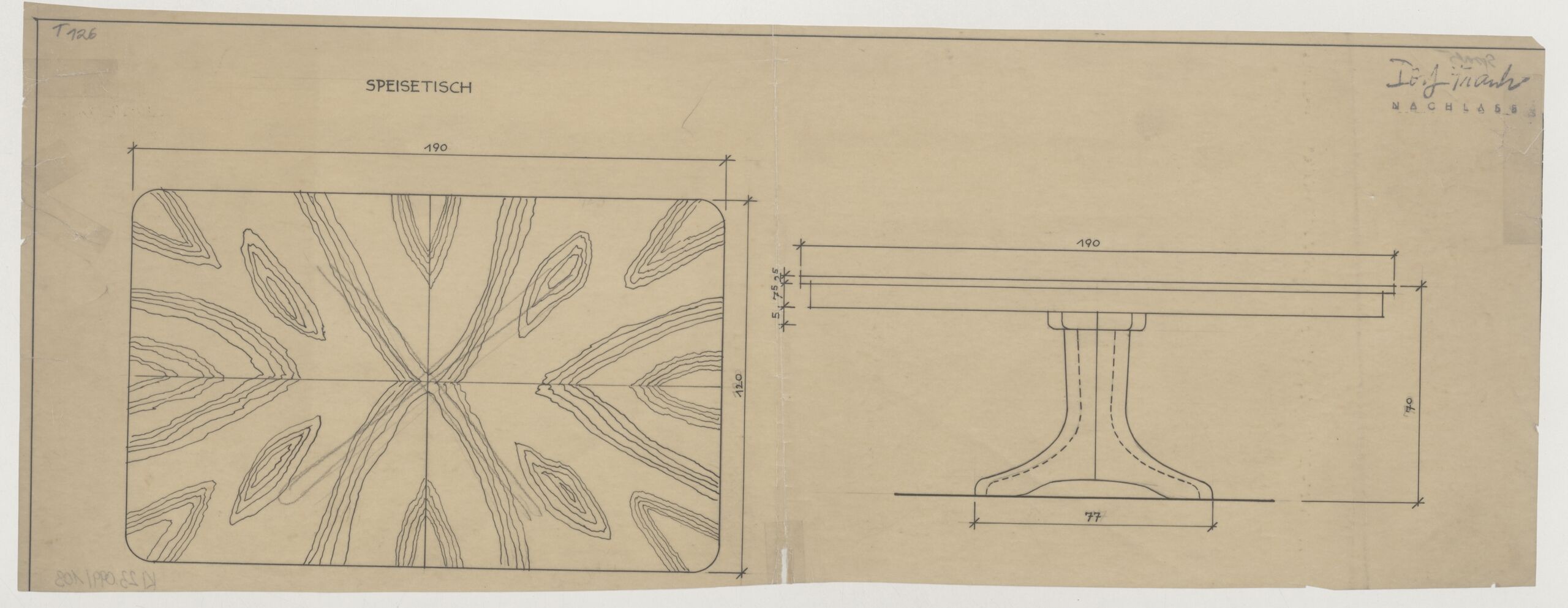 furniture design, Plan for a square dining table (T126), Josef Frank, MAK Inv.nr. KI 23099-103