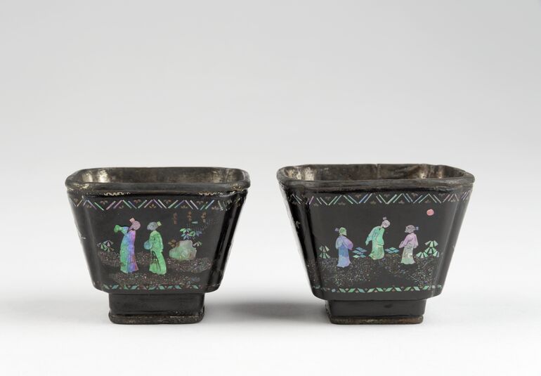 - text on the print: Gedicht von Gonchūnagon Sadaie 権中納言定家: Konu hito o Matsuo no ura no yūnagi ni yaku ya moshio no mi mo kogare tsutsu.Like the salt sea-weed / Burning in the evening calm / On Matsuo's shore / All my being is aflame / Awaiting her who does not come.Aus: http://jti.lib.virginia.edu/japanese/hyakunin/hyakua.htmlText von Ryūkatei Tanekazu 柳下亭種員: Chichi wa Shimane no menashidori ko wa mata miyako ni kago no tori chō ga nasake to Sajitayū ga makoto o tsue yo ogasa yo to harubaru kudaru Hyūgagata Isobe ni ama ga takumoshio no karafujite(?) oya ni ainuru zo ureshiki.