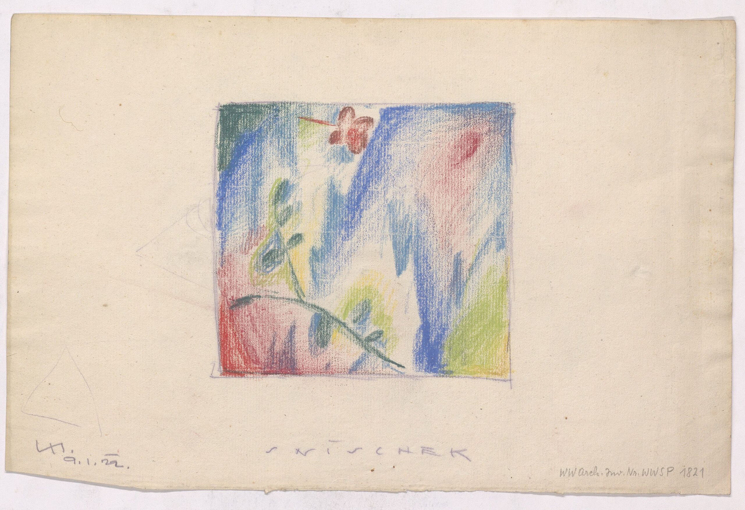 final artwork, Polster (Kissen) quadratisch mit stilisierter Landschaft und Ranke, Wiener Werkstätte, MAK Inv.nr. WWSP 1821