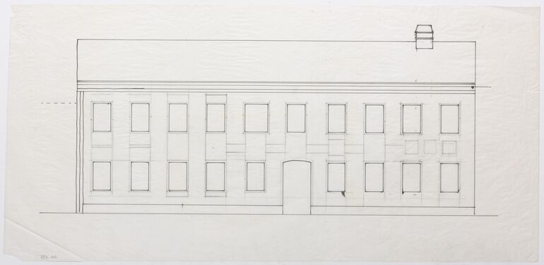 copy, Recto Aufriss, Grundriss, Seitenansicht und Querschnitt einer Wand mit Doppelflügeltür und Bücherregalen im Arbeitszimmer, Aufriss einer Vitrine, Verso Details der Steher, Anna-Lülja Praun, MAK Inv.nr. KI 16475-11-164