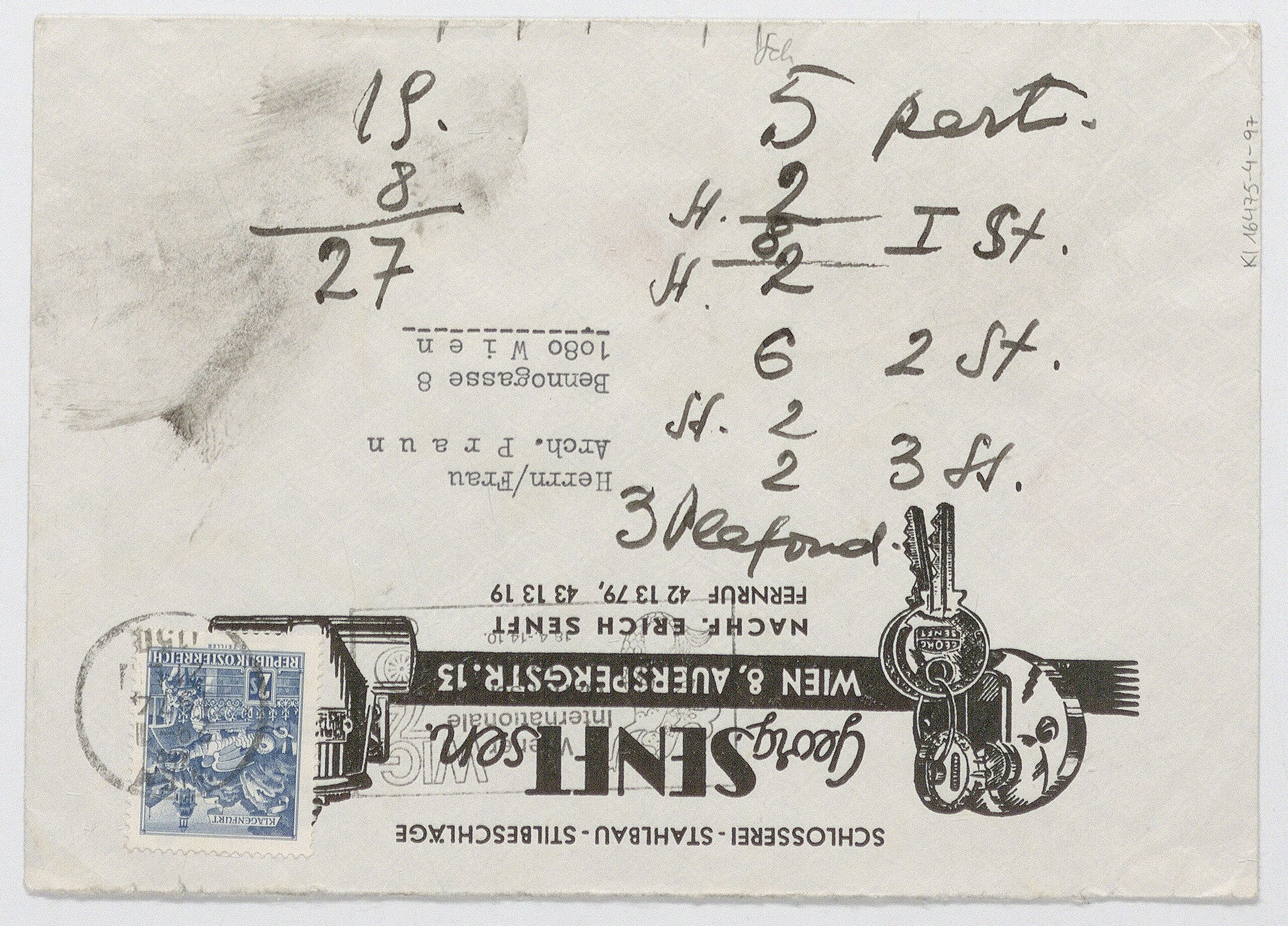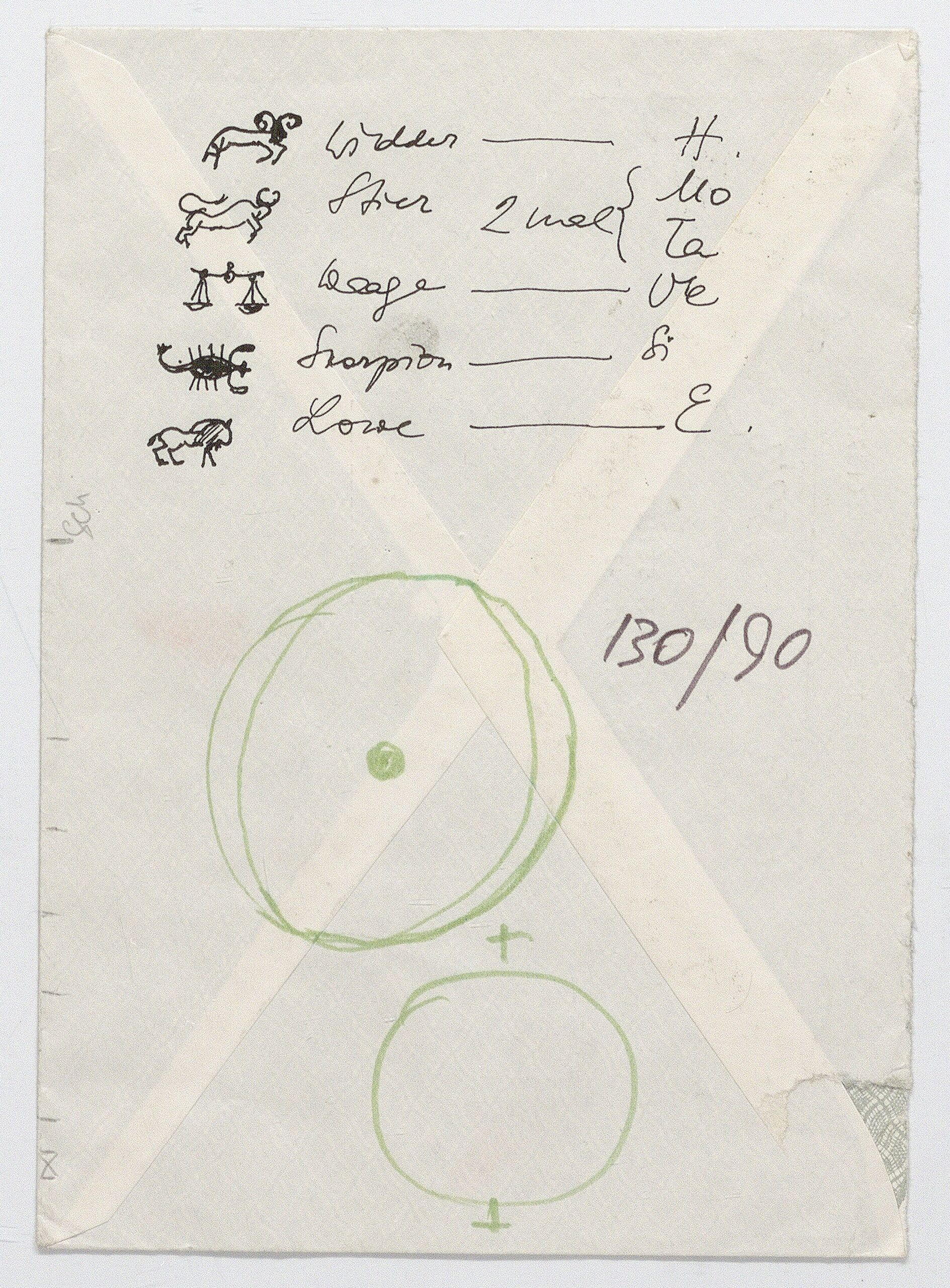 sketch, Recto Sternzeichen mit Tierdarstellungen, Verso Berechnungen und Notizen, Anna-Lülja Praun, MAK Inv.nr. KI 16475-4-97